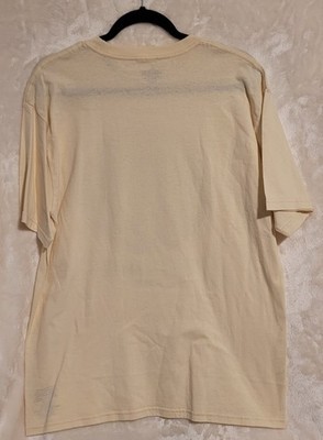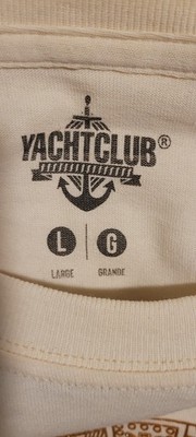 The Yacht Club Mexico Cancun Souvenir Graphic T-Shirt in size L is a vintage-inspired piece featuring an Aztec calendar design on the front. Made of comfortable cotton material with a knit fabric type, this ivory-colored shirt has a relaxed fit and short sleeves with a crew neck neckline. The embroidered logo and accent details add a unique touch to this oversized T-shirt, perfect for men looking for a stylish addition to their wardrobe. Ideal for summer and spring seasons, this shirt is machine washable and ideal for casual wear.
