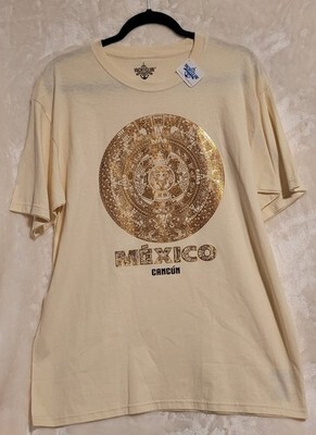 Yacht Club Mexico Cancun Souvenir Graphic T-Shirt With Aztec Calender Size L