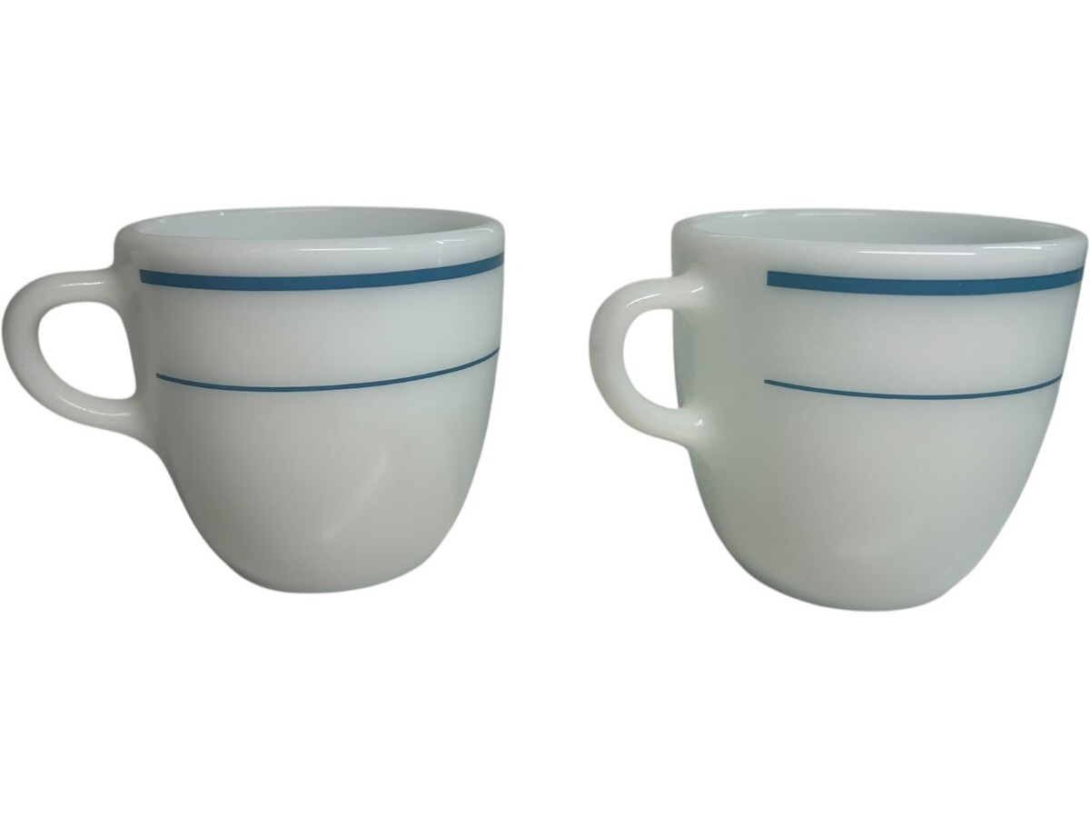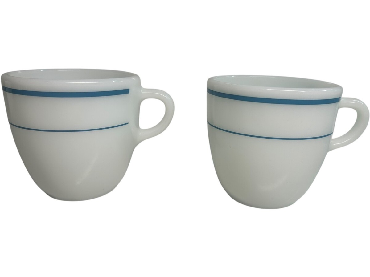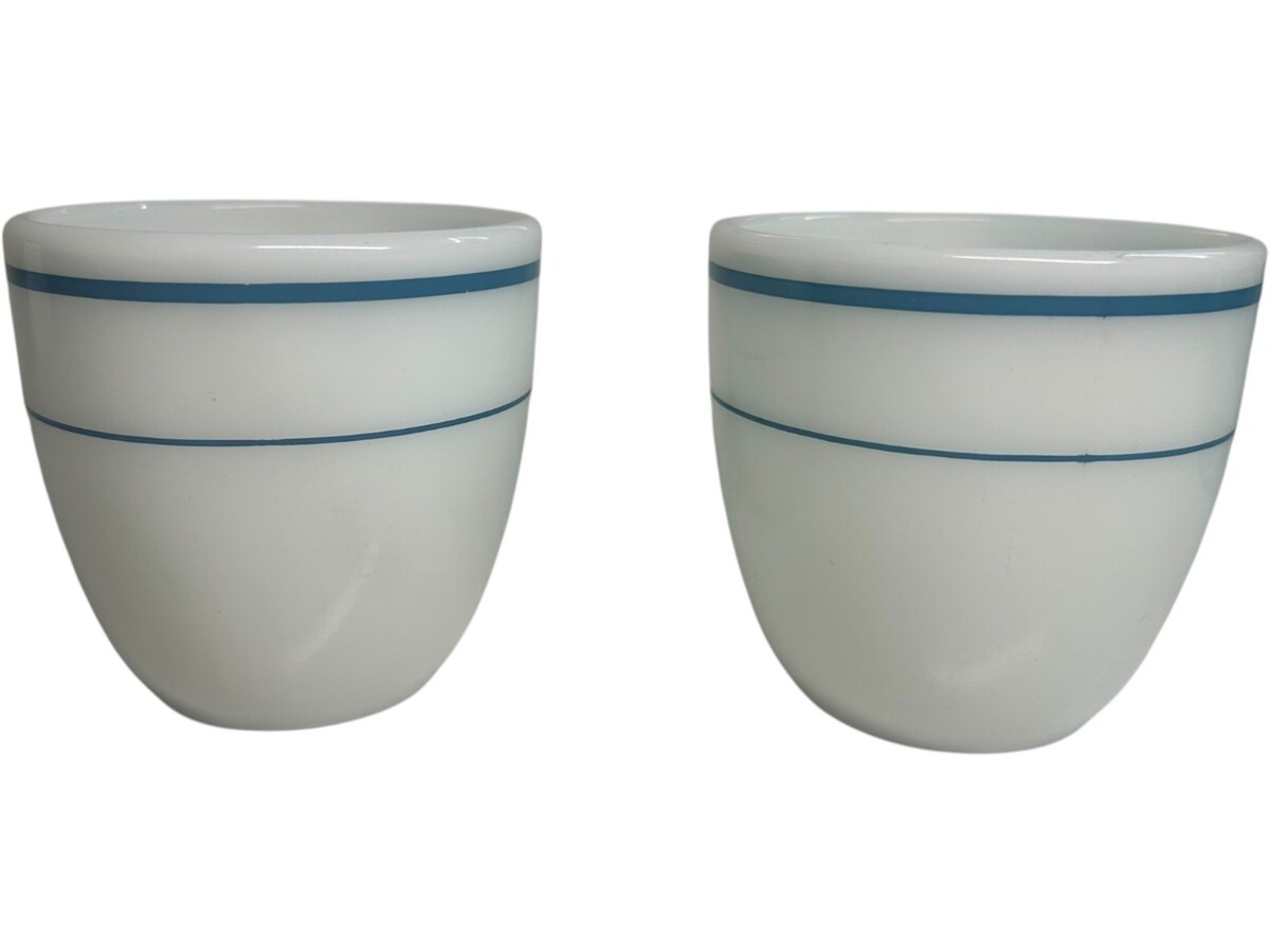?2 Matching milk glass cups with sky blue stripping stand approximately 3.25 inches tall