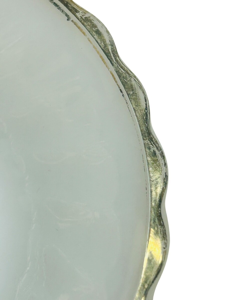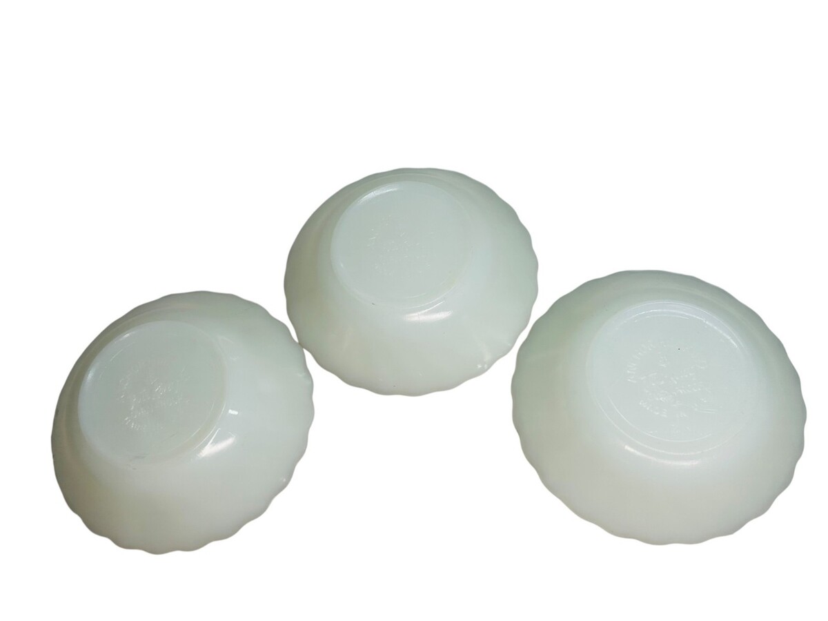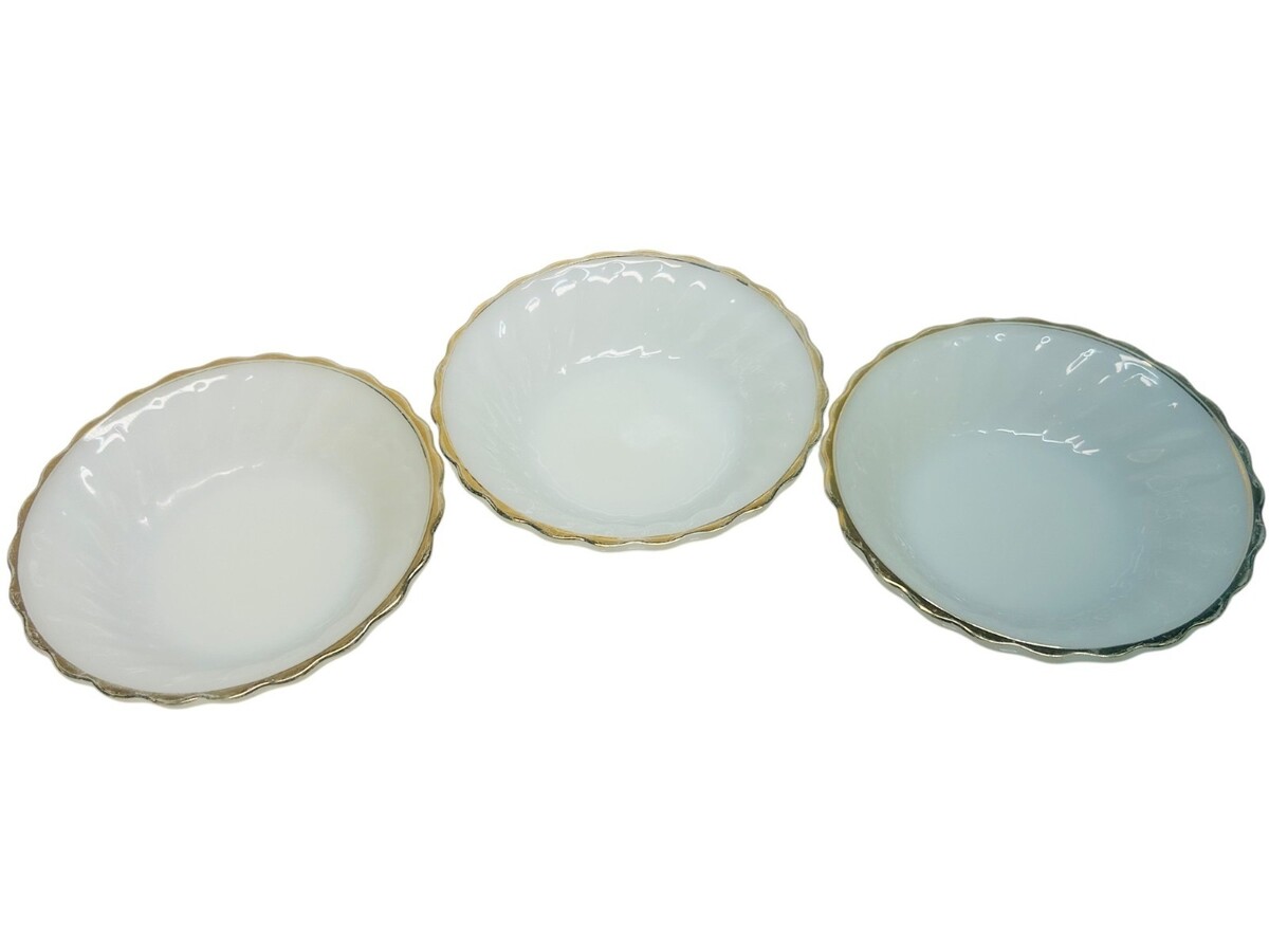 Vtg Fire King Anchor Hocking Swirl Milk Glass Gold Rim Dessert Bowls 4.5" Set 3