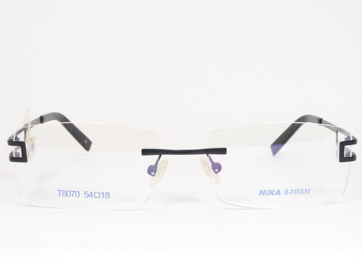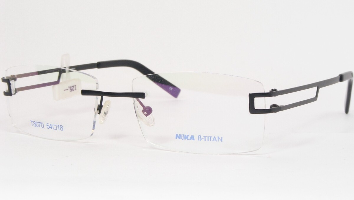 Nika B-Titan T8070 EVIP070 Black Unique Eyeglass Glasses Rimless 54-18-139 mm. (L707)