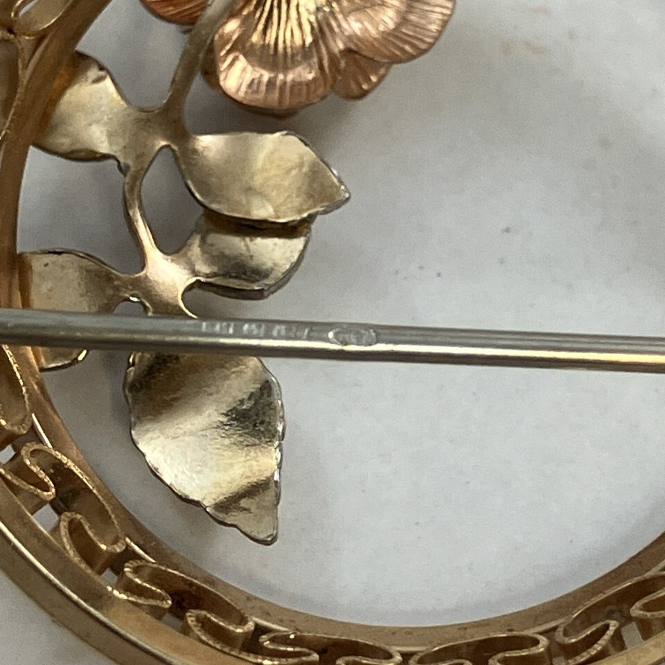 Vintage Krementz Gold Tone Floral 1.25” Circle Brooch Pin