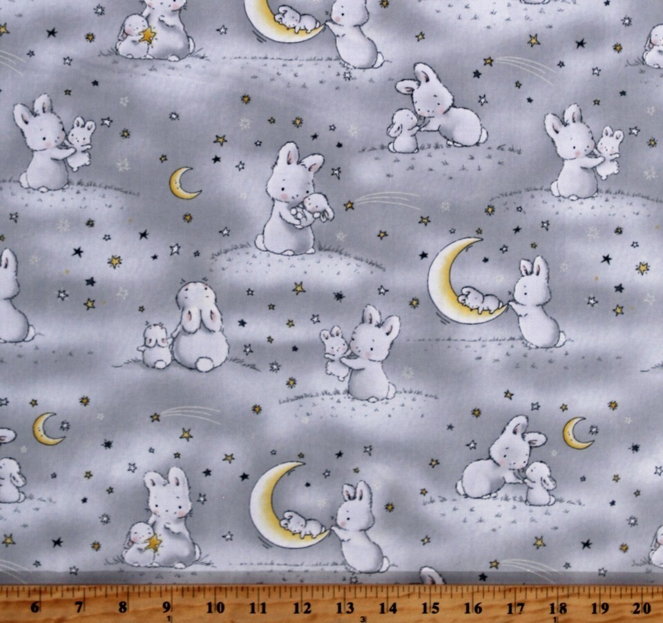 Cotton Bunnies and Little Ones Moons Kids Gray Cotton Fabric by the Yard D652.23
