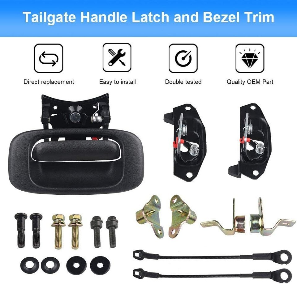 Tailgate Handle Kit Compatible With 1999 - 2006 Silverado 1500, 2001 - 2006 Silverado 1500 HD, 2001 - 2006 Silverado 3500, 2001 - 2006 Silverado 2500 HD, 2007 Silverado 1500 HD Classic, 1999 - 2004 Sierra 2500, 2007 Sierra 1500 Classic, 2007 Sierra 3500 Classic, 2007 Sierra 2500 HD Classic Tailgate Kit Replaces OEM Part Number OEM 88980509, 88980510, 15074252, 15074253, 15078745, 15078746,15228539, 15997911, 15921948, 15921949, GM1915105 GM1916102 Our Tailgate Hardware Rebuild Kit Quality Same as Original, make it direct replacement Tailgate Hardware Built-in quality ABS plastic ? alloy material Before placing the order, please check your car model in the " amazon confirmed fit " in the top left corner. Please make sure to match the exact part numbers between this part and the part that you are replacing.