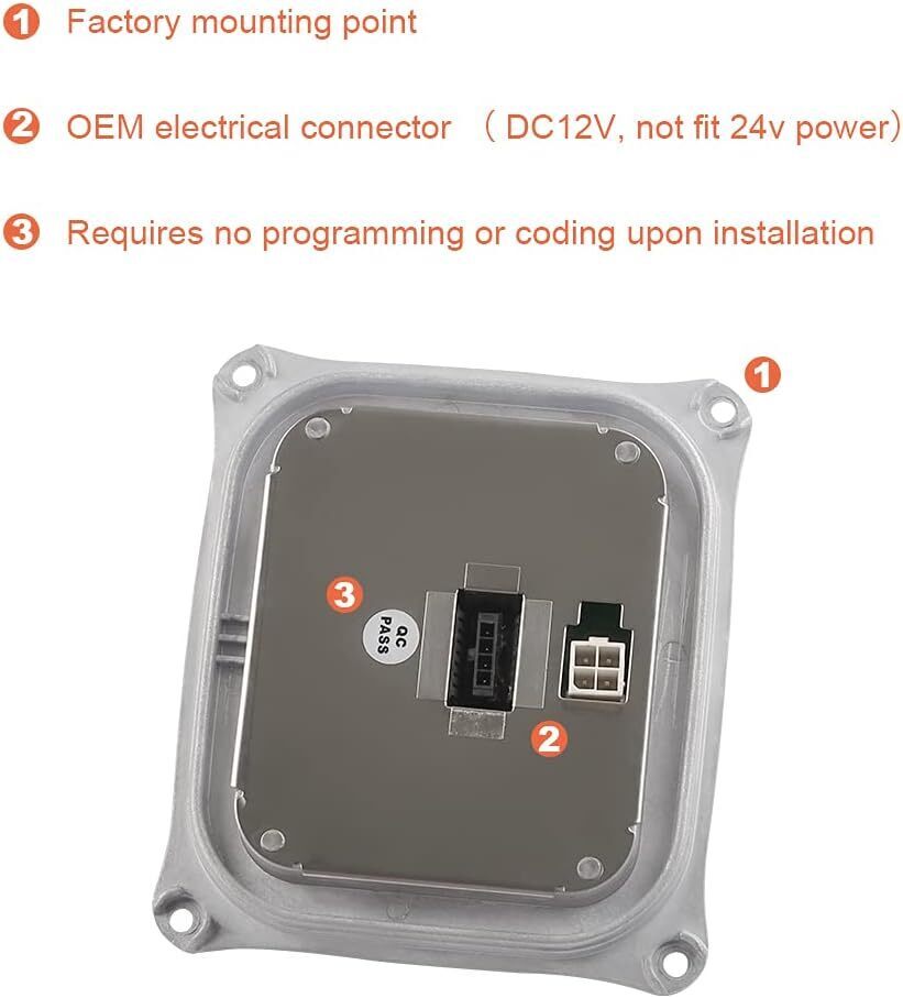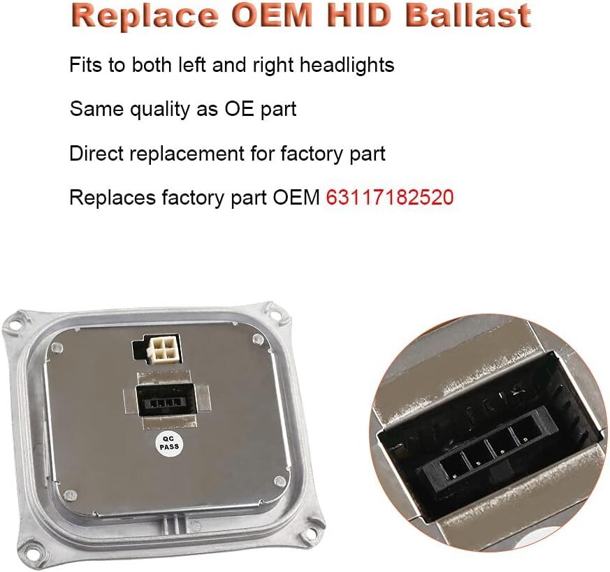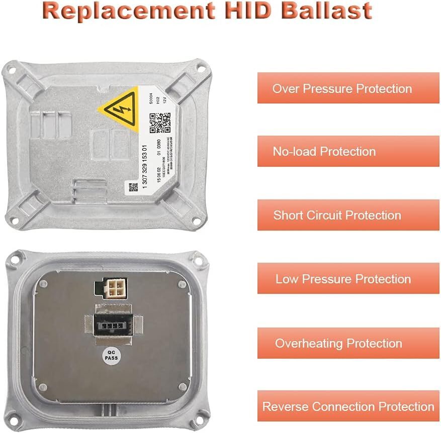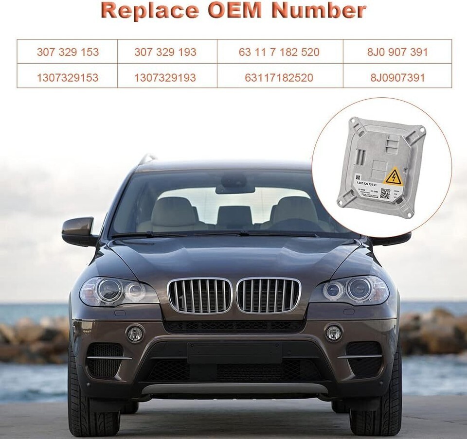 HID headlight ballast is responsible for supplying power to your headlight's bulb. Every ballast is designed to connect directly to your vehicle and requires NO programming or coding Replace OEM Number: Xenon headlight ballast replacement for 307 329 153, 307 329 193, 63 117 182 520, 8J0907391, 130732915301, 130732919301, 1 307 329 153 01, 1 307 329 193 01 Compatible with Following Vehicles 2006-2010 BMW 328i ,2006-2010 BMW 328xi,2006-2011 Cadillac DTS more. See below for full list of vehicles Input Voltage is DC 12V not fit 24V, Output Voltage Power 1200VDC,Fits D1R D1S left or right headlight bulb NOTE:Ballast will be stop working If water vapor enters, please check water Leakage headlight assembly issue before installation. Each of your vehicle?s headlights has its own ballast. While the HID Xenon Ballasts do commonly fail so can your factory headlight bulb