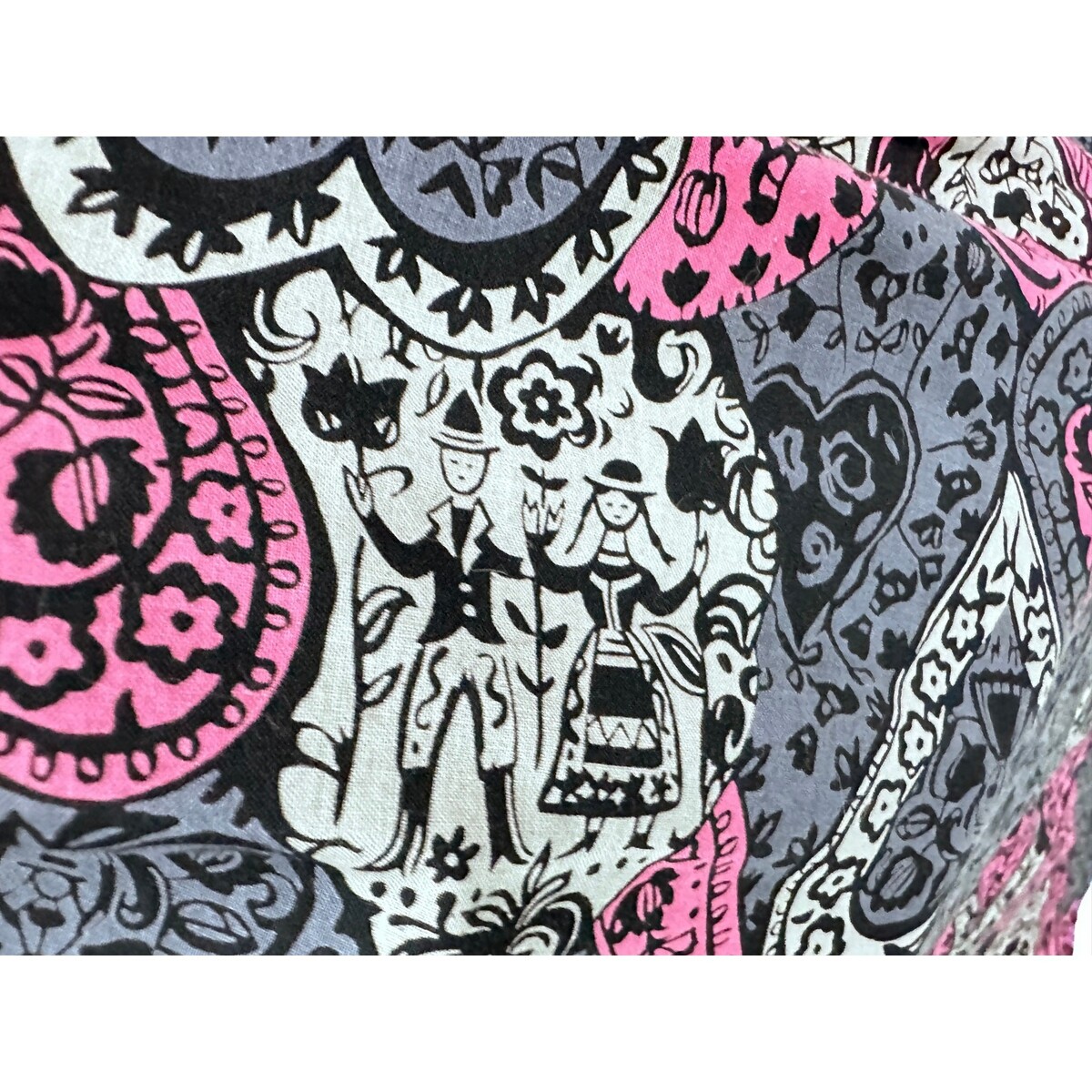 1950s VTG Pink Grey Cotton Pleated Skirt Dutch Heart Couple Print Full Sz S