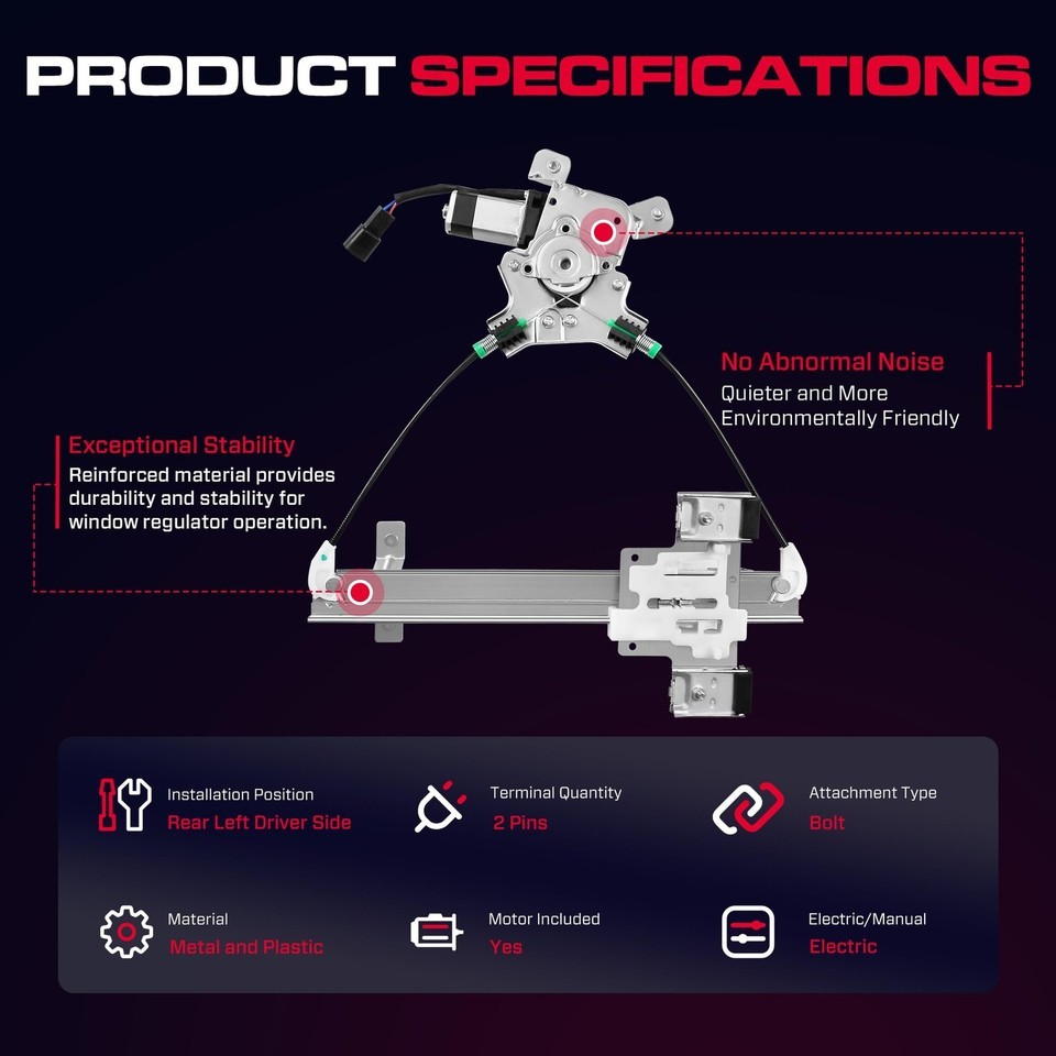 Fit Rear Driver (Left) Side Power Window Regulator w/Motor for 07-14 Cadillac