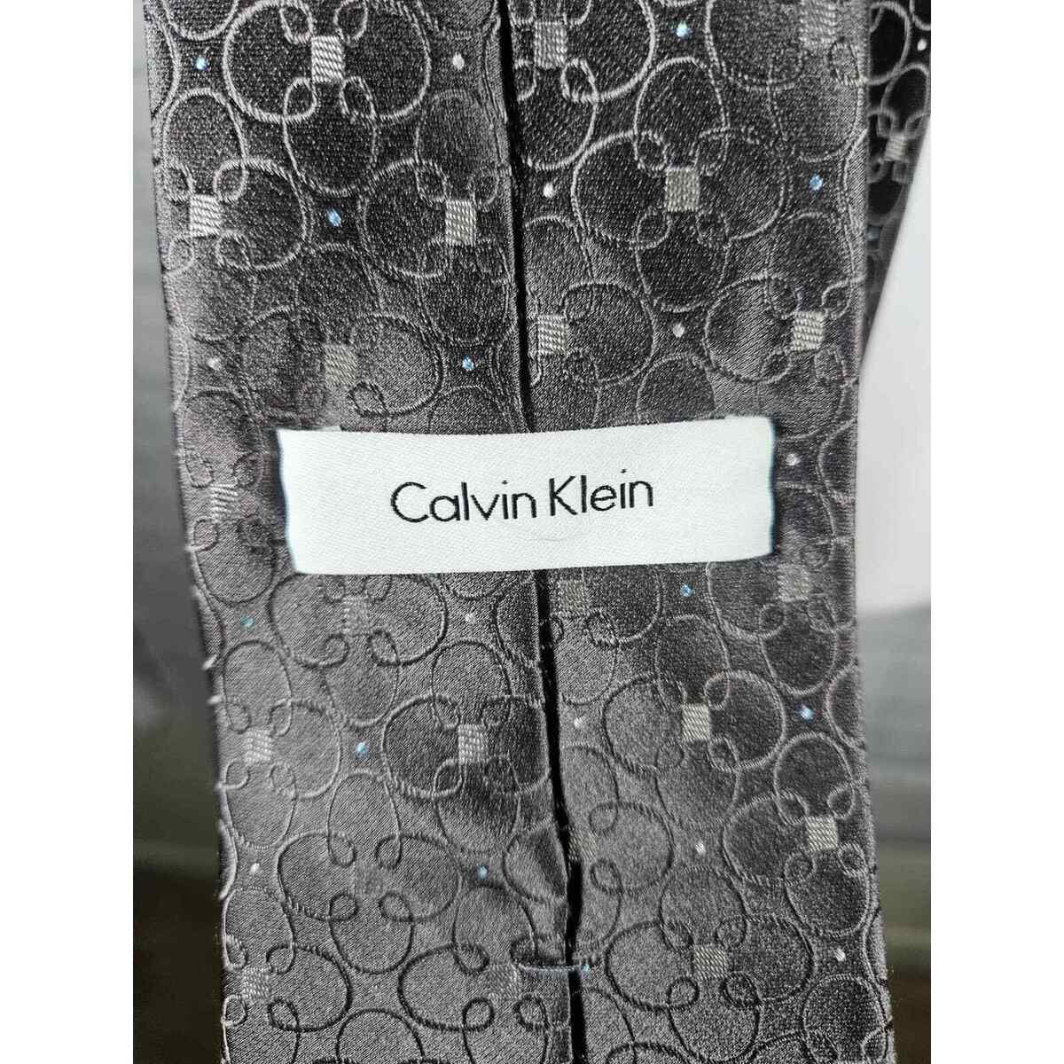 Calvin Klein Men's Silk Necktie Gray and White Pattern 100% Silk
