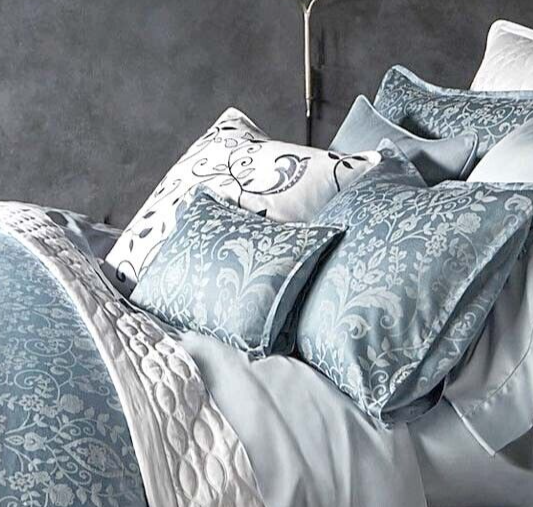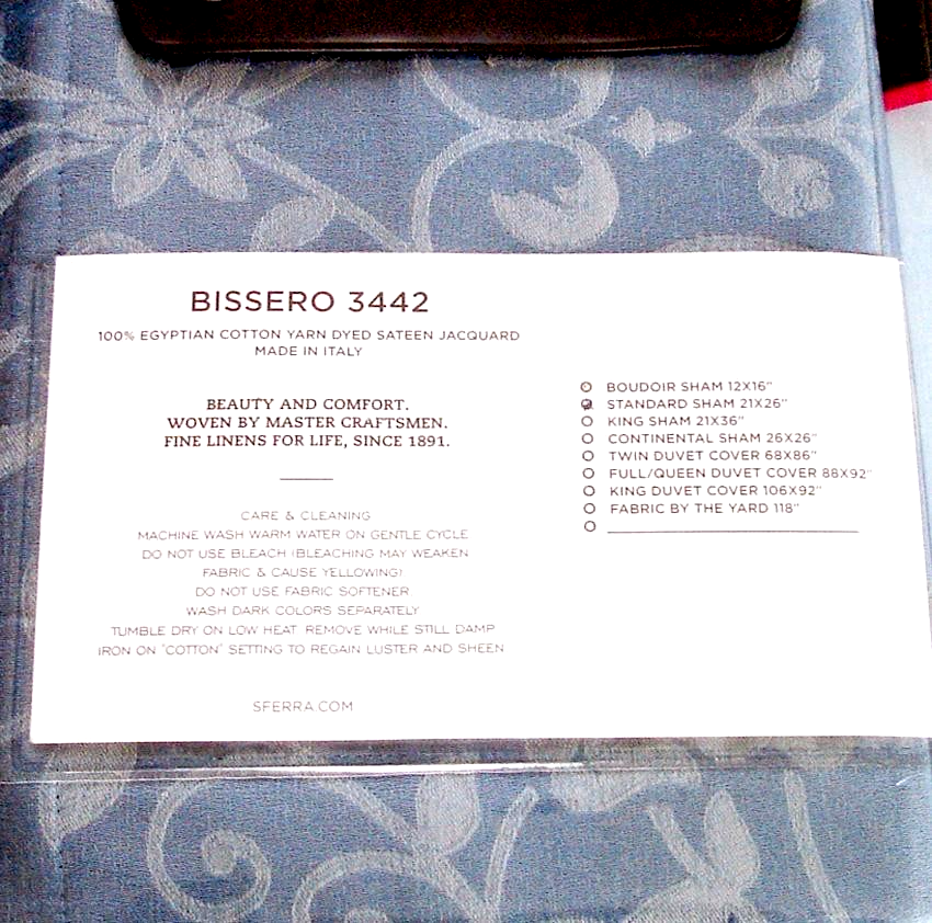 Sferra Bissero Standard Sham Cadet Blue Egyptian Cotton Sateen Jacquard New