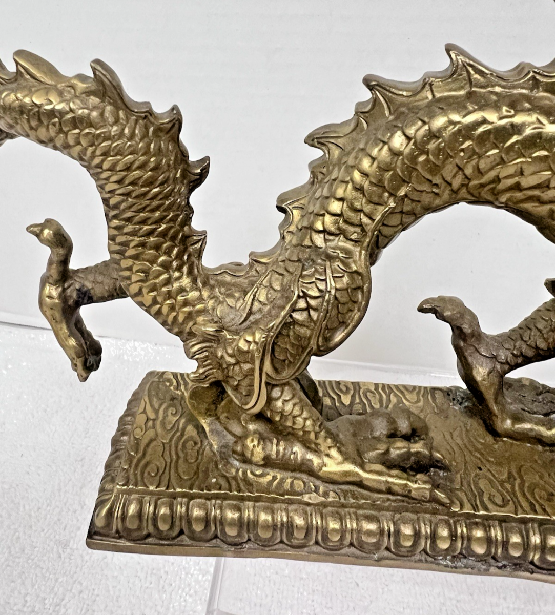 Vintage Cast Brass Detailed Dragon w Ball In Claw 13" Long x 7 " Tall Very Detai