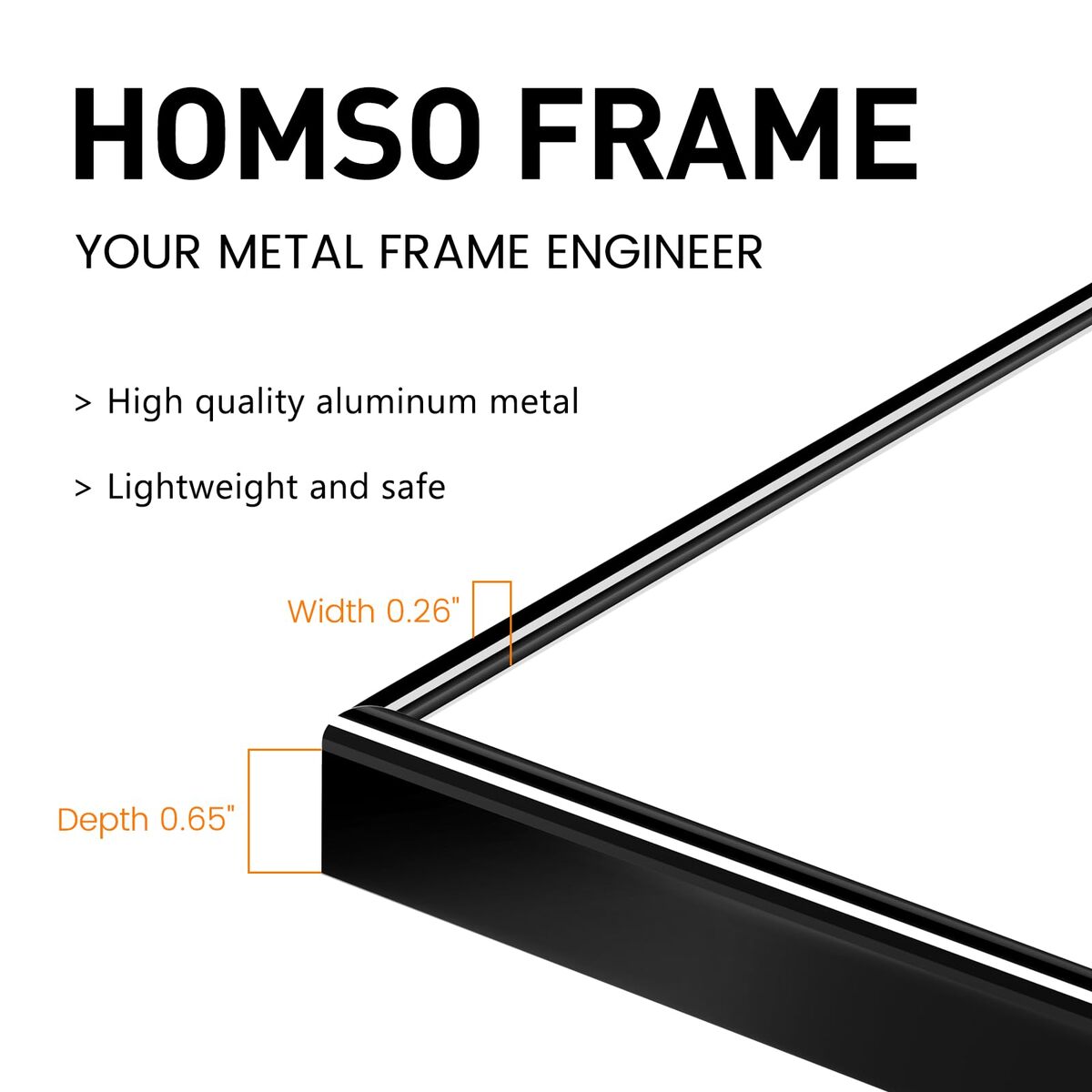 FRAME SIZE: Minimalism design style, A2 frame is matted to fit a 11.7x16.5 inch picture, and it measures 16.5x23.4 inch with the mat board removed. Add a professional touch to your art,STURDY METAL MATERIAL: A2 picture frame is made of sturdy metal aluminum, plexiglass and smooth rigid backing rather than plastic and wood. It protect your photo against dust or dampness damage, keeping it new for years,SIMPLE INSTALLATION: The 16.5x23.4 frame is easy to remove the backing and comes with hooks. Please peel off the films before using. You interchange photos regularly with confidence without having to spend a ton of money on a custom frame,PERFECT GIFT IDEA: A2 poster frameset of 2 is not only an exquisite decoration in your home, coffee shop, art gallery, but also A2 frames is perfect for Baby Wedding showers, Anniversary, Birthday, Mother's Day, Father's day, Valentines,WELL PACKED: HOMSO use multiple protective packaging in 16.5 x 23.4 frame and truly care that you love artwork. An affordable price offers unbeatable value for you