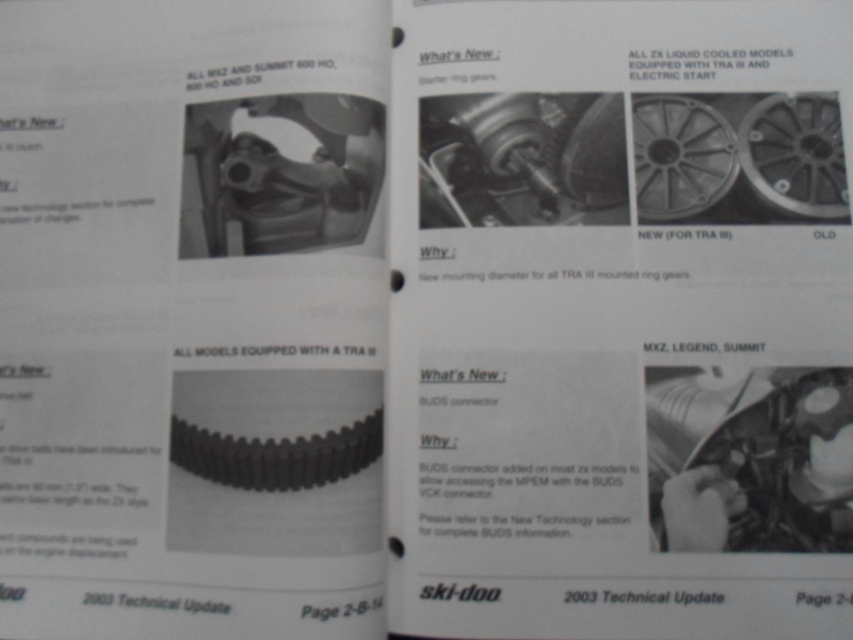 Libro Di Aggiornamento Tecnico Ski Doo 2003 Manuale Di Servizio Riparazione OEM