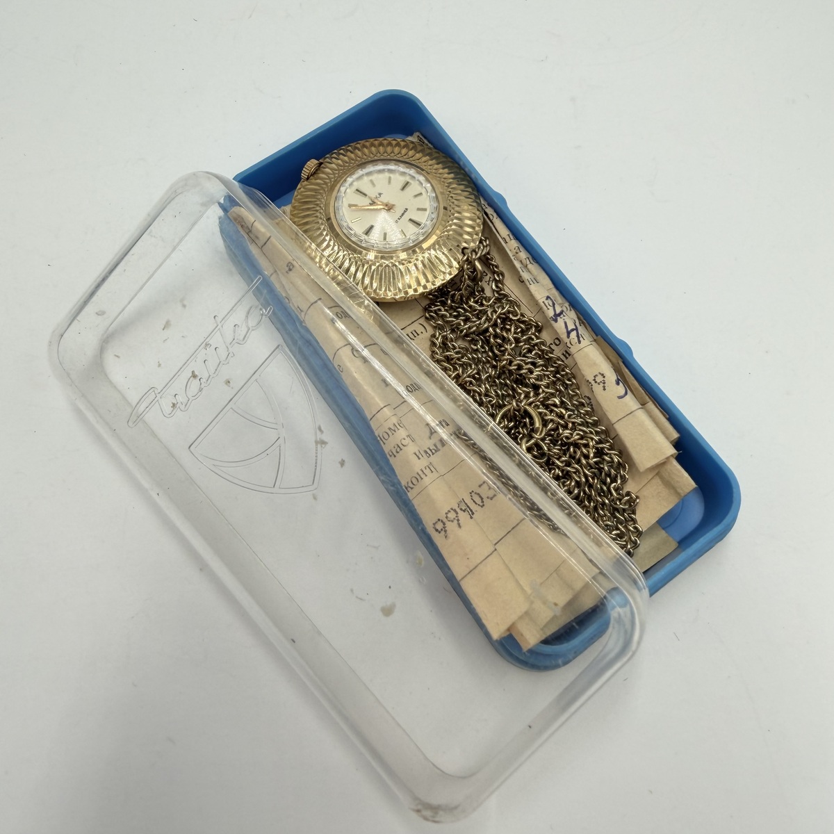 Vintage Soviet Women?s Pendant Watch ?Chaika? ? Gilded AU, 17 Jewels, Chain, Box Passport