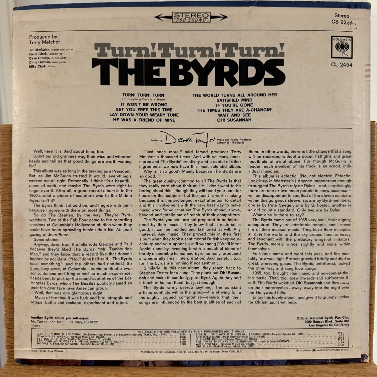 The Byrds Turn! Turn! Turn! Vinyl LP Columbia CS 9254 Times They Are A-Changin'