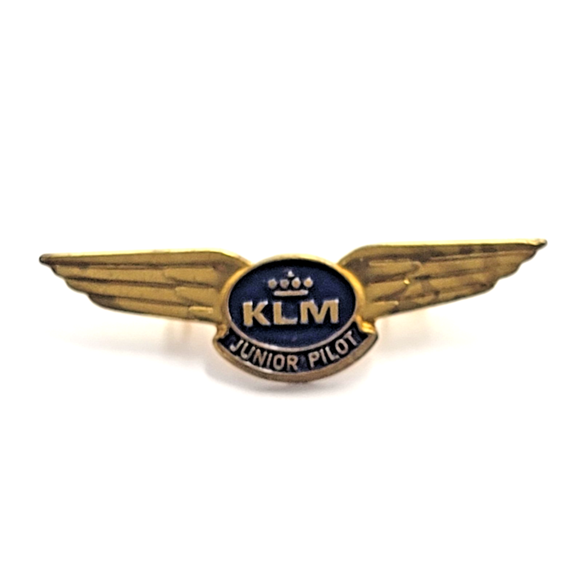 KLM Junior Pilot Wings Pin Enamel Gold Tone Blue Aviation Kids Airline Souvenir