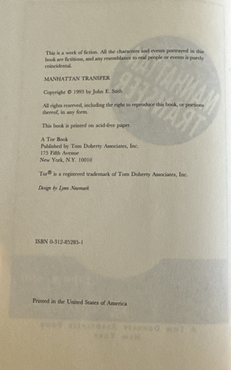 MANHATTAN TRANSFER By John E. Stith - Hardcover Book