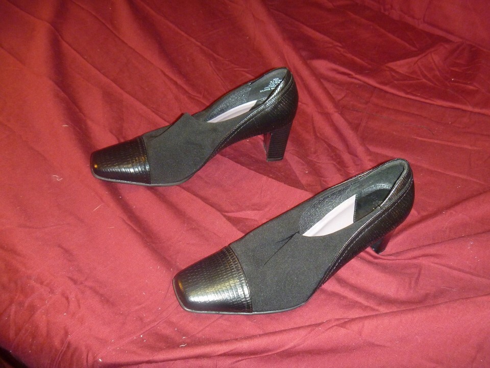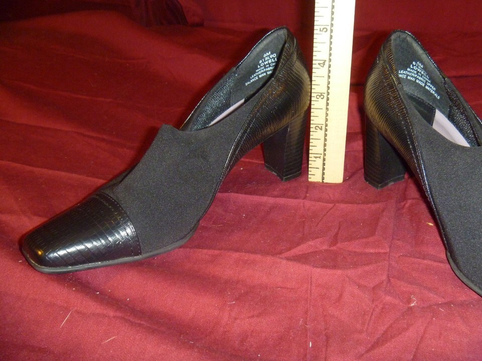 LifeStride Black Leather Fabric Womens Heels "Lowell" Size 6 Med. Good condition. Refer to pictures!