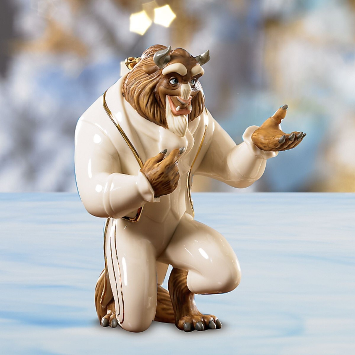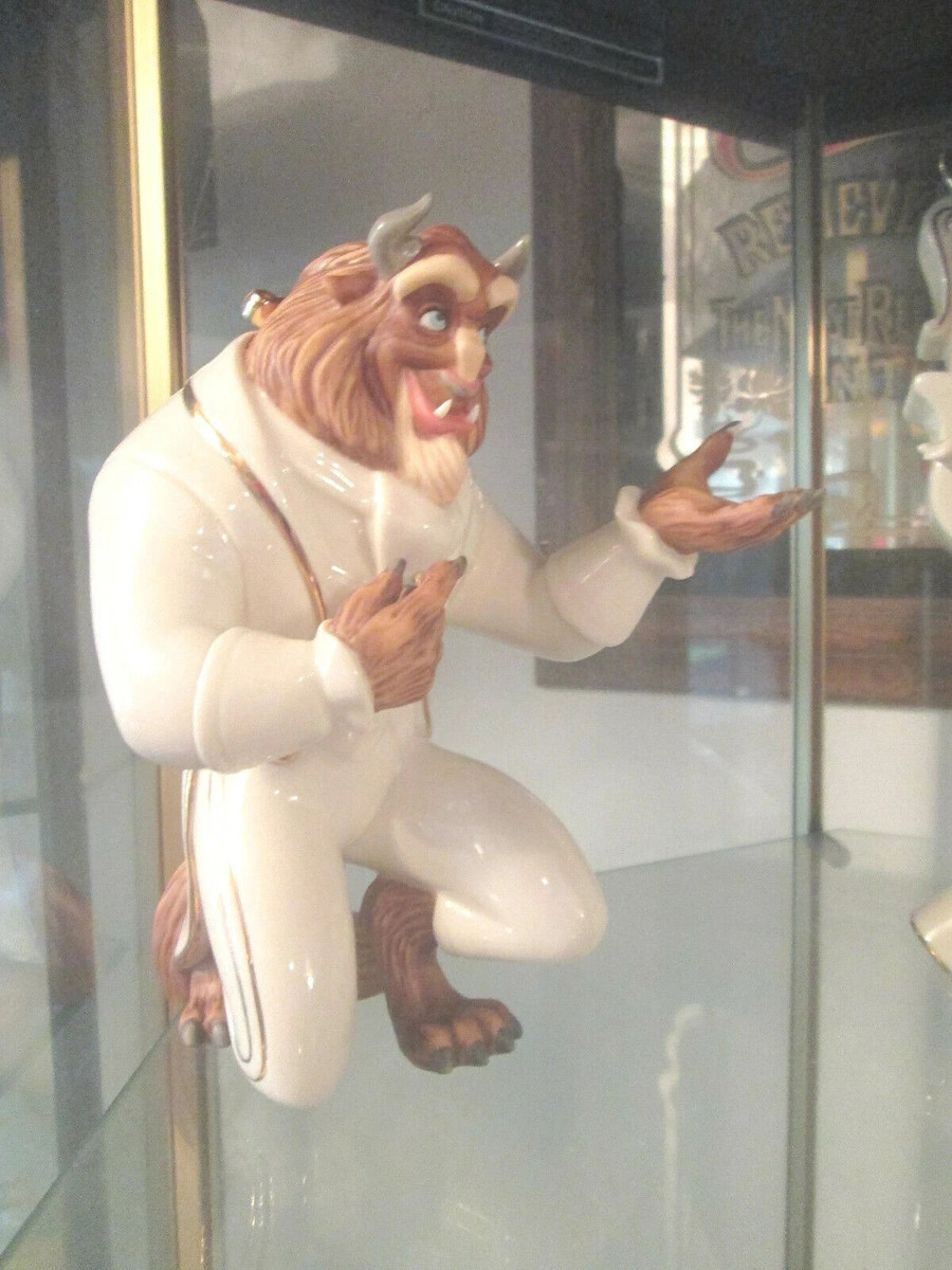 The unforgettable suitor of Disney's "Beauty and the Beast" is masterfully depicted in Lenox fine china. Here, the Beast is shown on bended knee, his hand outstretched to his true love, Belle.