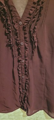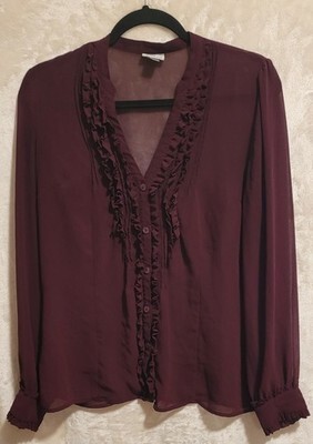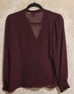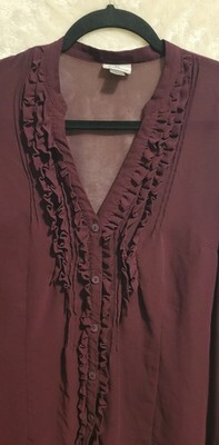 Worthington Ruffled V-Neck Long Sleeve Polyester Blouse Women Burgundy Large
