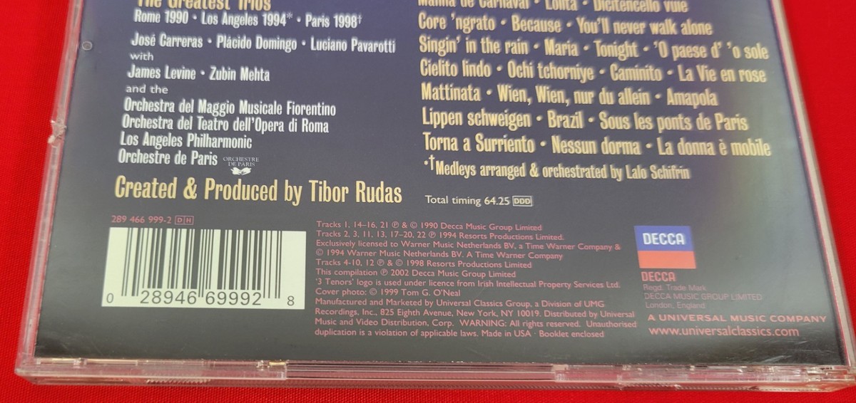 O) Best of by The Three Tenors Carreras Domingo Pavarotti (CD, 2002 Decca)