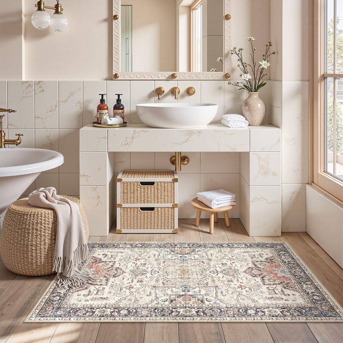 HomeWill 3x5 Washable Non-Slip Vintage Floral Area Rug Entryway Living Room Kitc