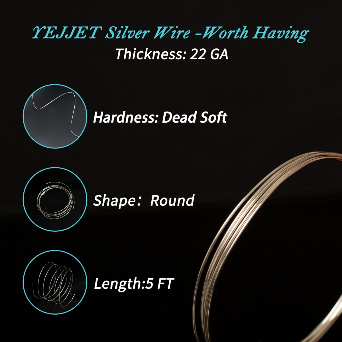 Metal Type: 925 Sterling Silver,Hardness: Dead Soft,Color: Silver; Shape: Round,Length:5 Feet,Prepare our silver wire for your creative touch by giving it a gentle polish with the included cloth for an added touch of radiance