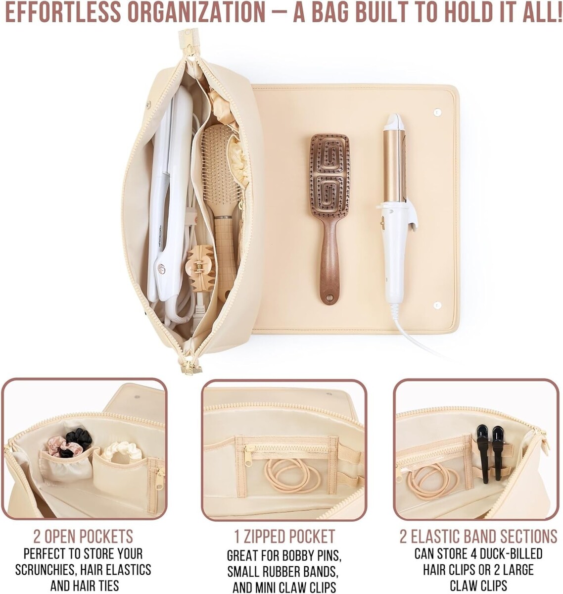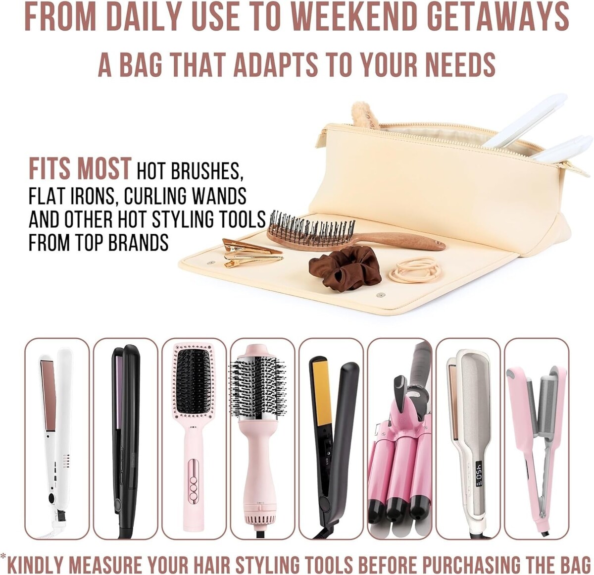 Expansive Brand Compatibility: Generously sized to fit hairstyling tools from top brands, including heat brushes, flat irons, and curling irons, providing functionality and convenience.