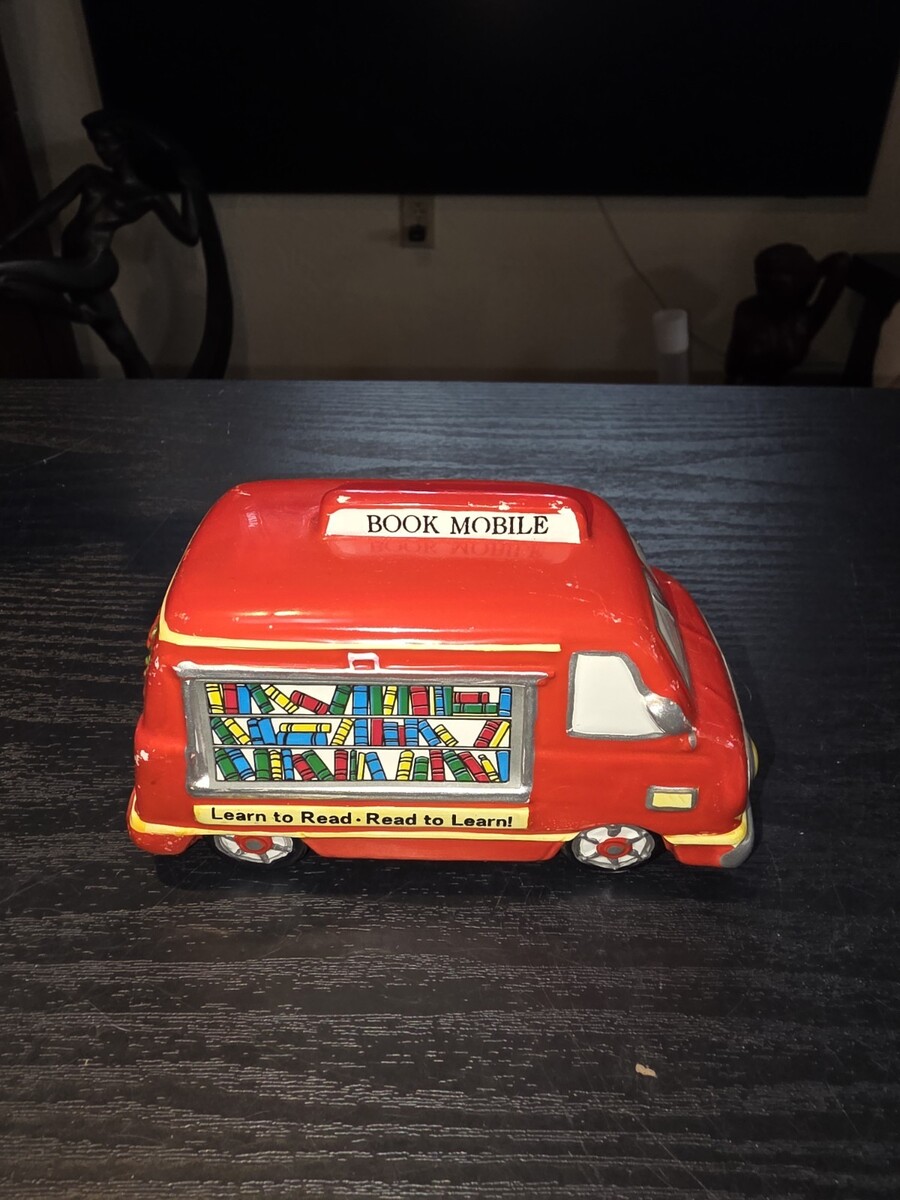 Department 56 Book Mobile Village Library Ceramic Red Van Christmas Holiday