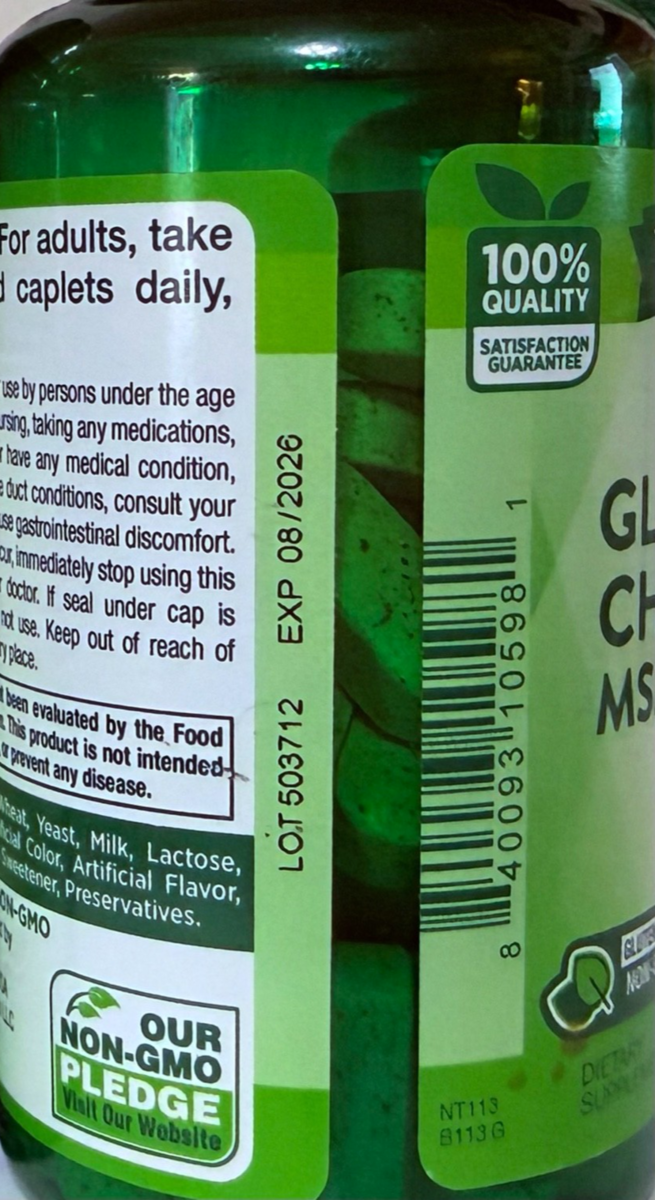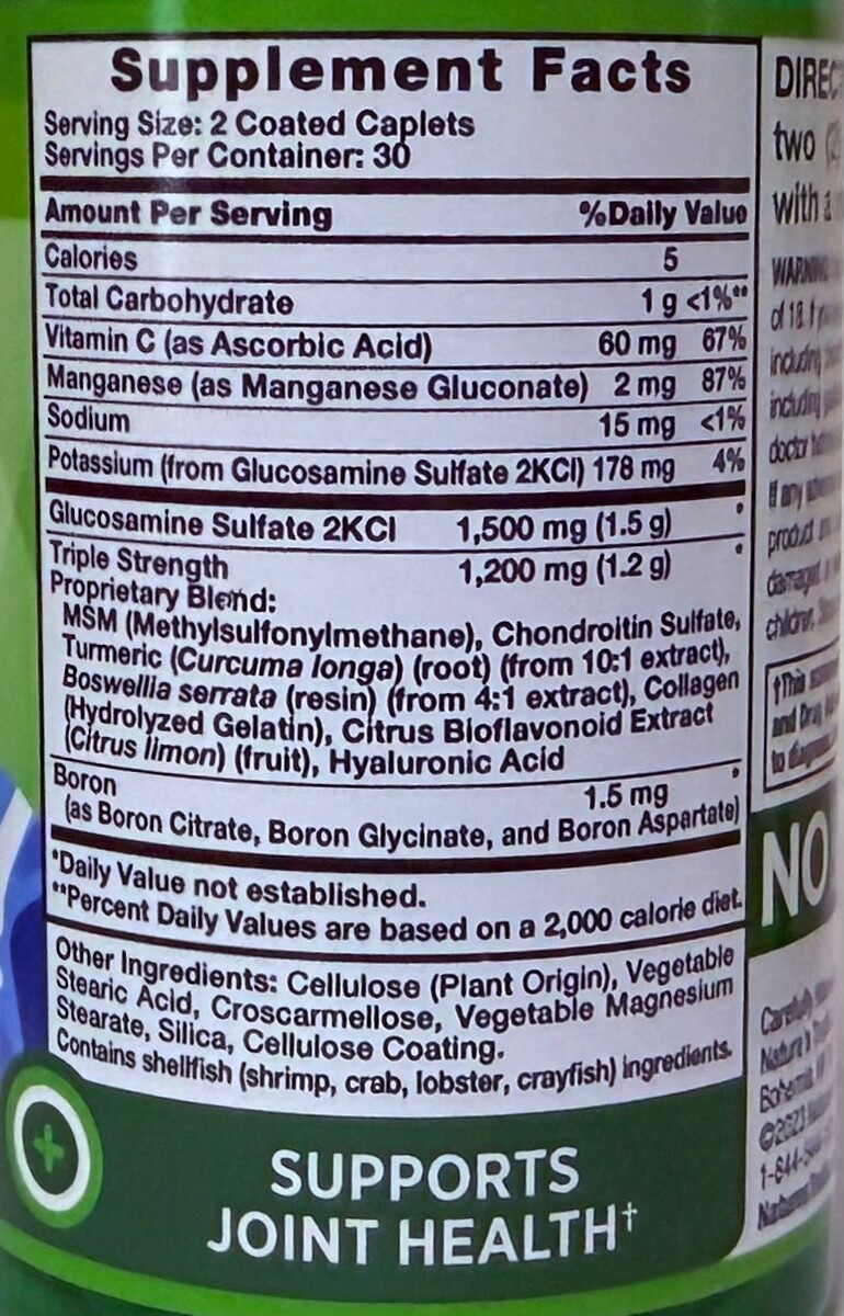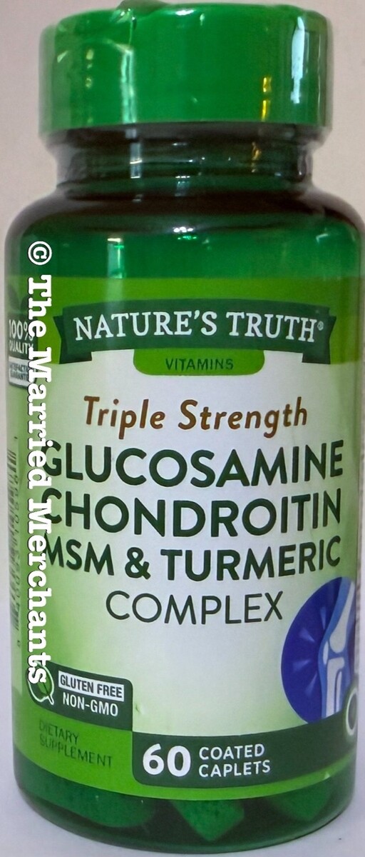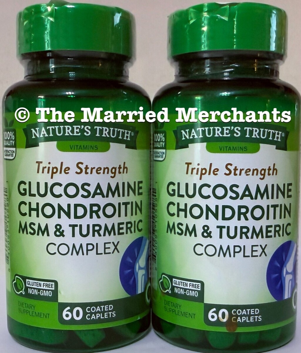 Nature's Truth TRIPLE Strength Glucosamine, Chondroitin, MSM, Turmeric Complex Dietary Supplement - (2) bottles of 60 caplets each.