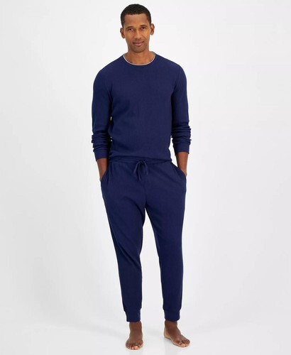 Club Room Men's Waffle Long-Sleeve T-Shirt & Pajama Pant Set Blue Notte-Medium