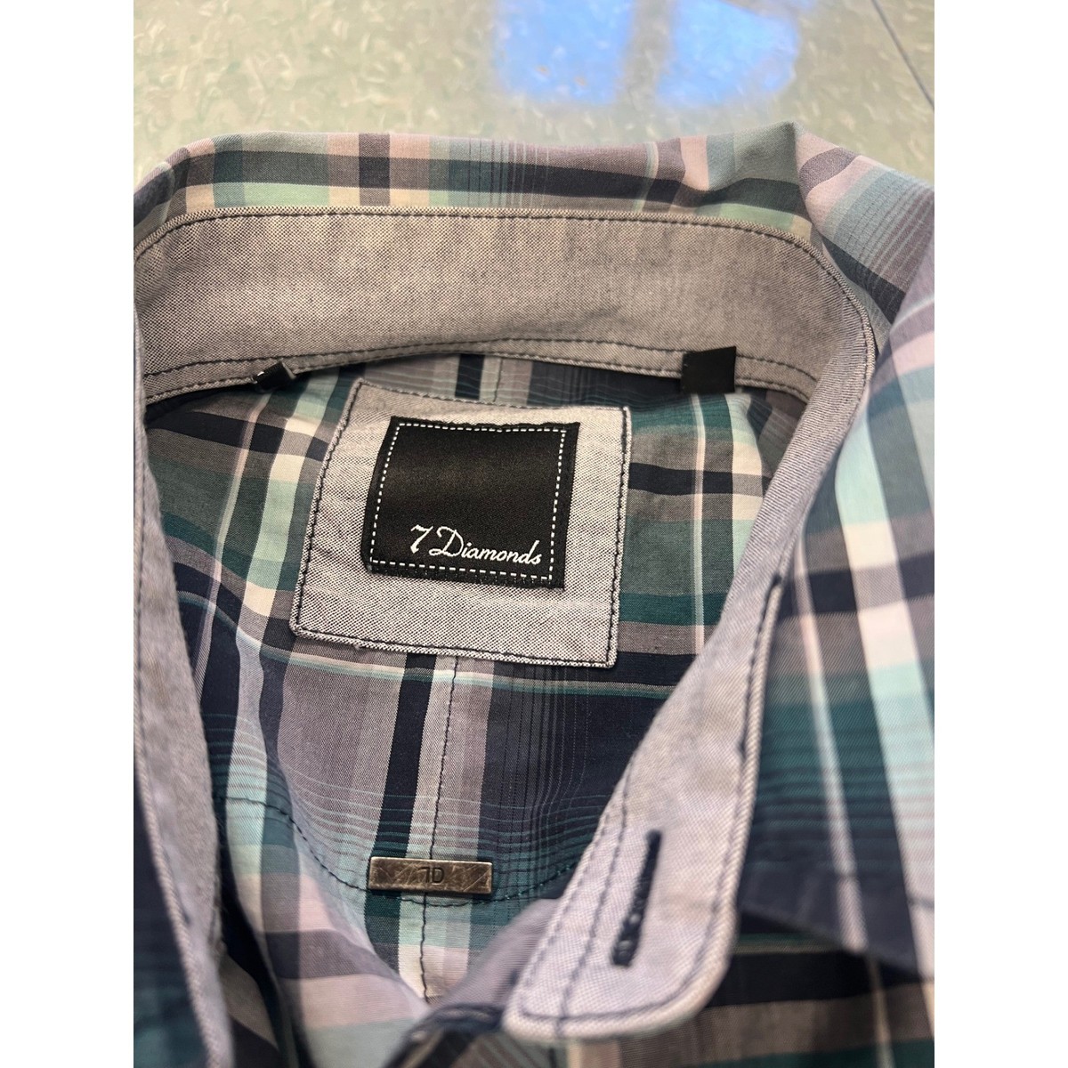 Keywords: 7 Diamonds shirt, plaid shirt, mens button up, long sleeve shirt, casual wear, streetwear, western style, fall fashion, spring style, everyday essential, layered look, comfortable fit