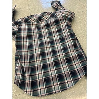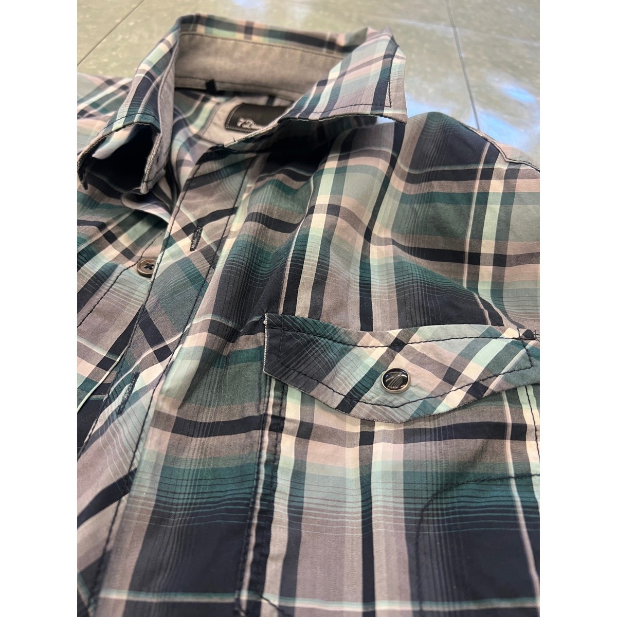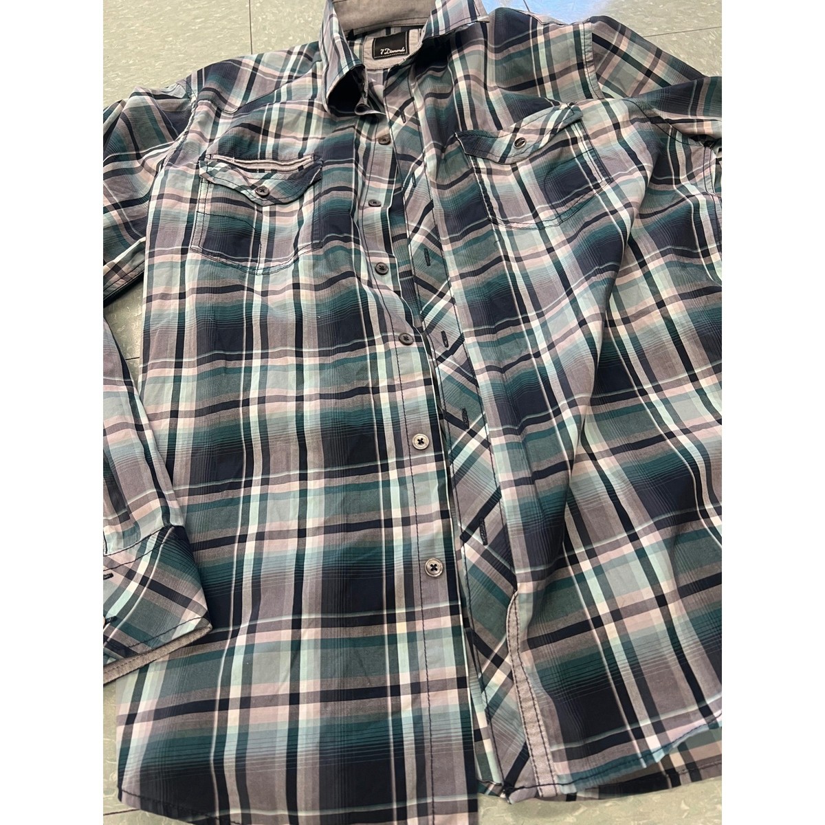 7 Diamonds Mens Plaid Long Sleeve Button Up Shirt Size L Green Blue Gray