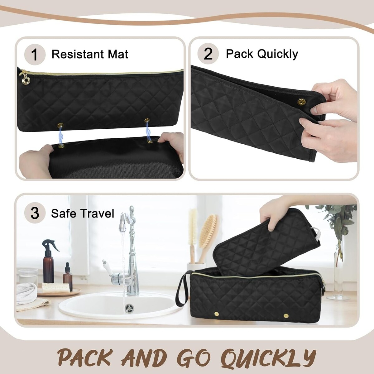 Durable Travel Hair Tools Organizer with Heat Resistant Mat - Black Elegance