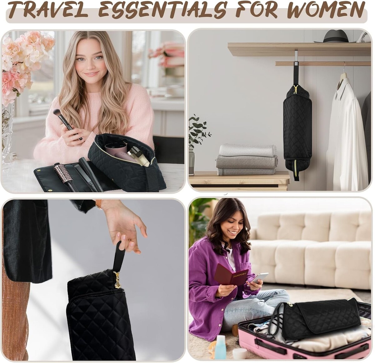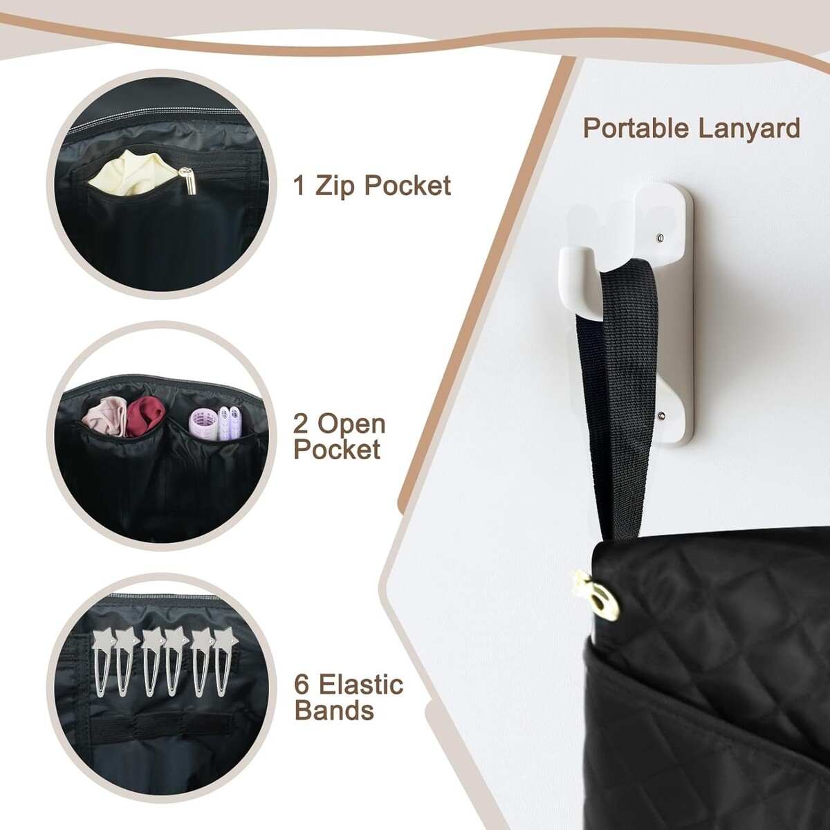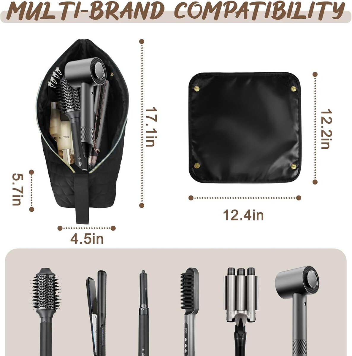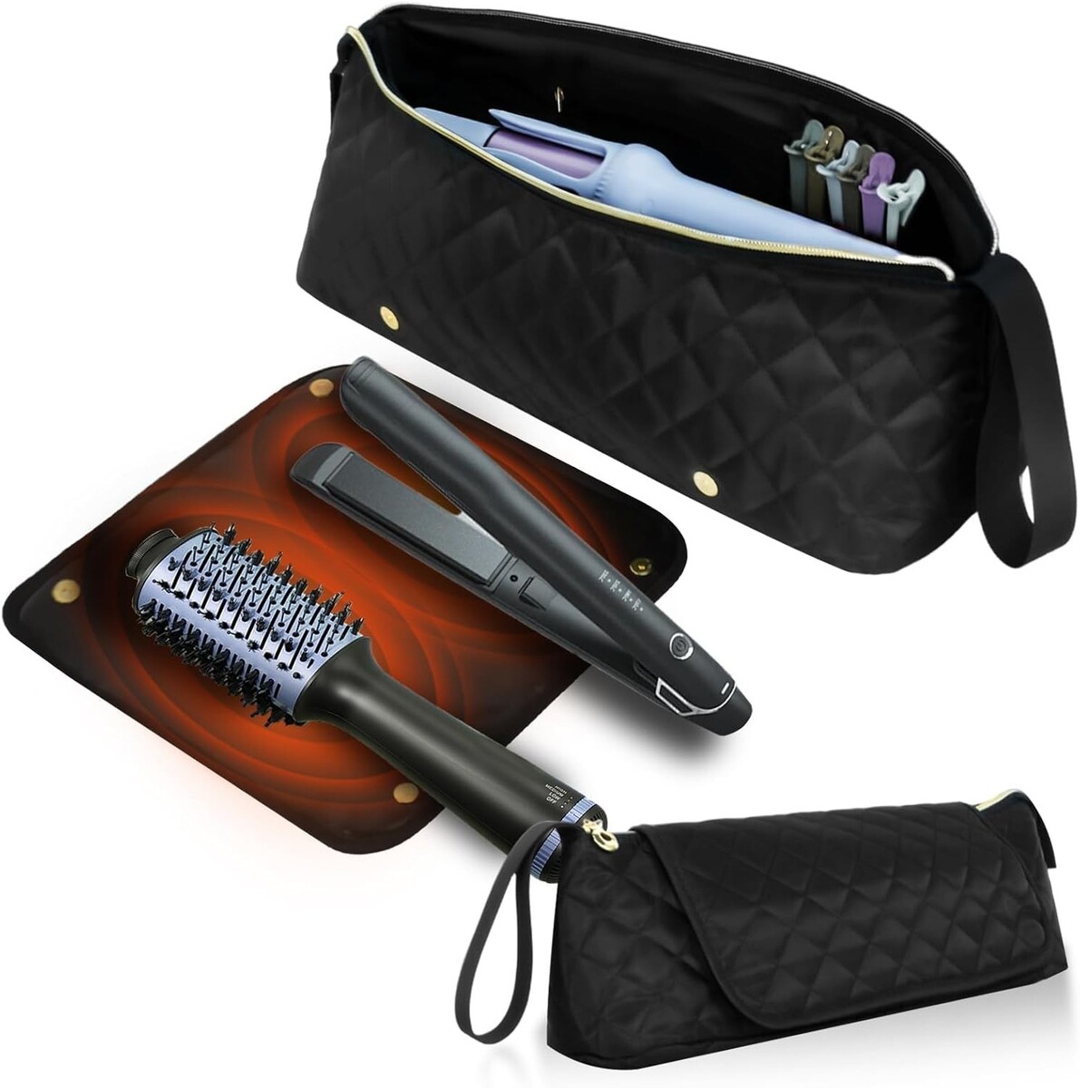 Versatile Storage: The 2-in-1 bag is spacious enough to hold various styling tools including flat irons, curling irons, hair straighteners, hairbrushes, and compact hair dryers.