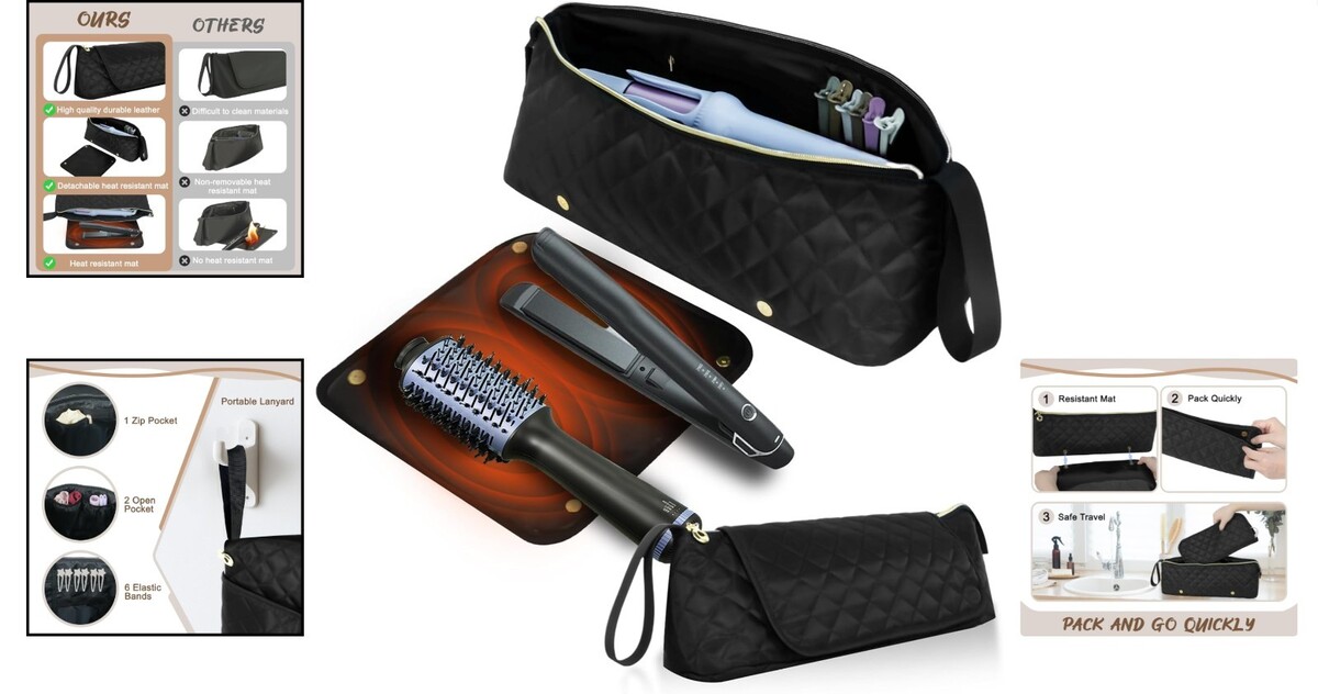 Invest in the ultimate in hair care convenience and style - order your Durable Travel Hair Tools Organizer with Heat Resistant Mat today and travel with grace!