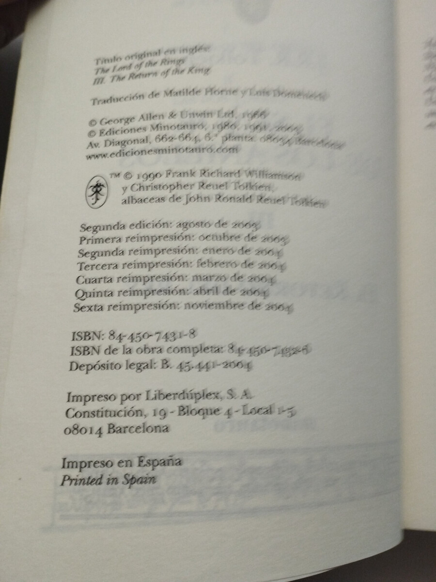 El señor de los anillos Retour del Rey III Jrr Tolkien 2004 - Livre Espagnol Am