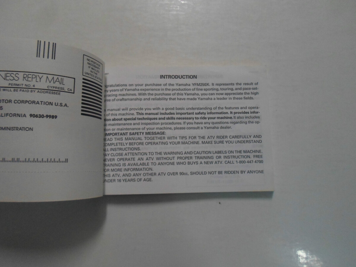NEW 2000 YAMAHA BEARTRACKER YFM250XN OWNERS MANUAL