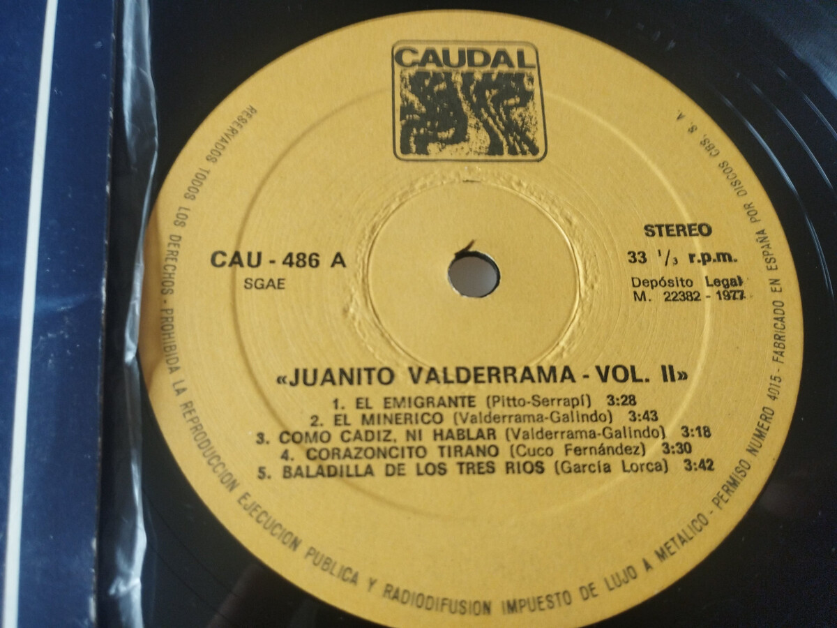 Juanito Valderrama Vol II el Emigrante exitos 1977 - LPvinyl 12" VG/VG