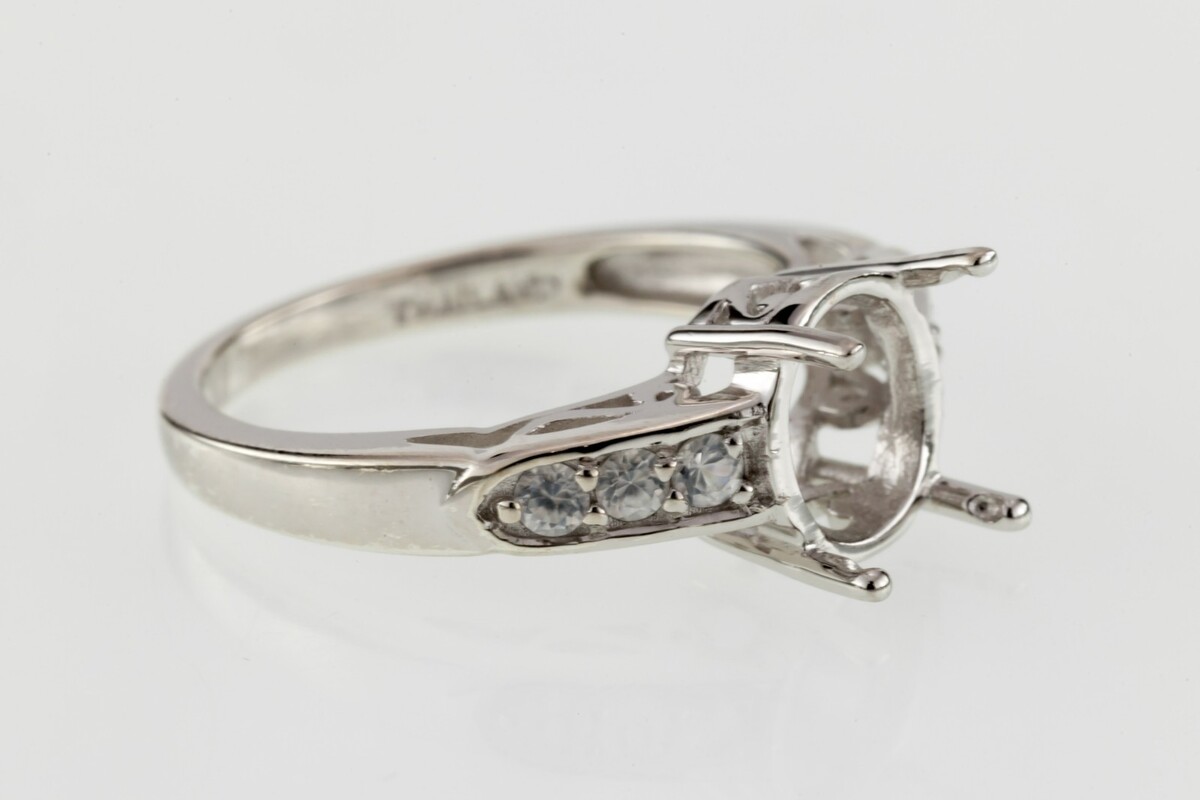 Sterling Silver Round Solitaire Semi-Mount Ring with CZ Accents Size 6.25