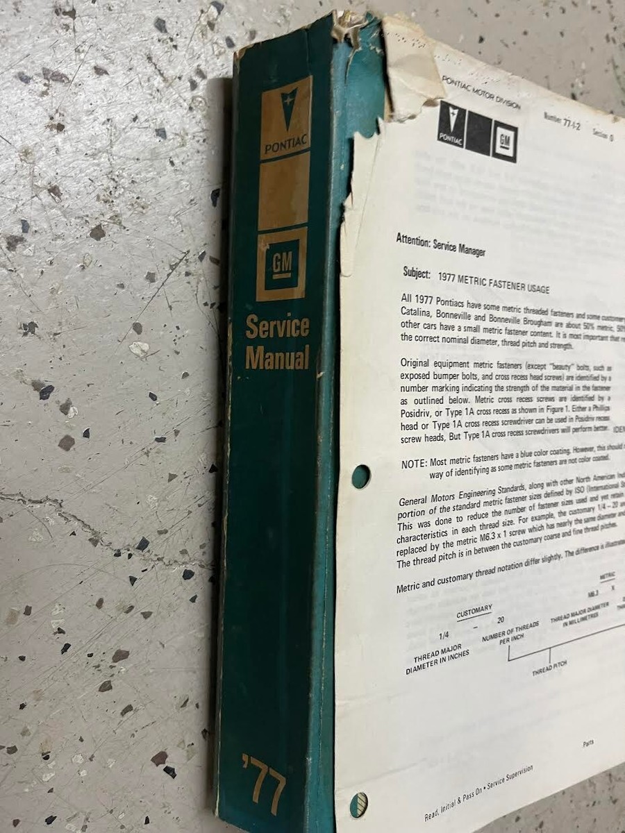 1977 Pontiac All Models Factory Service Manual and the Bulletin Page