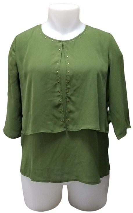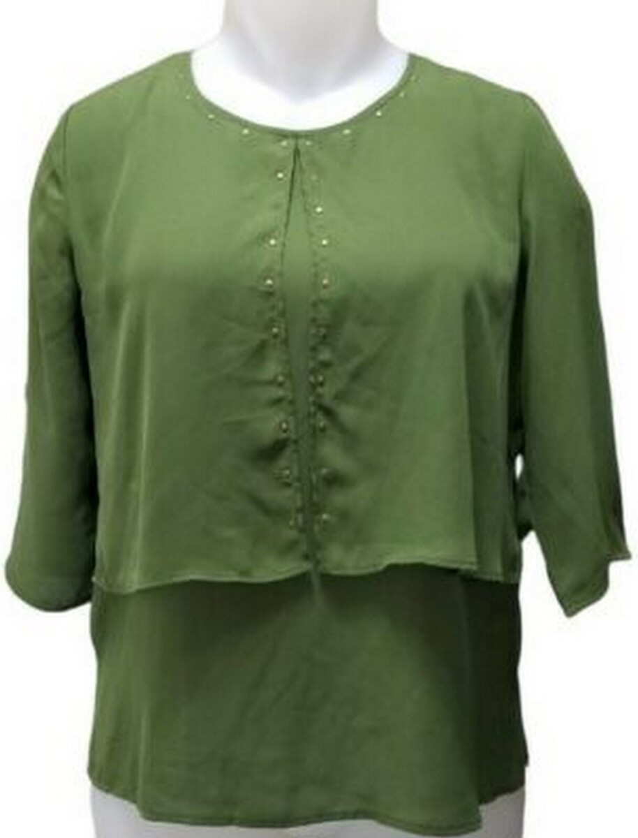 NY Collection Petite Blouse PL Green Layered Chiffon Studded Top 3/4 Sleeve NWT