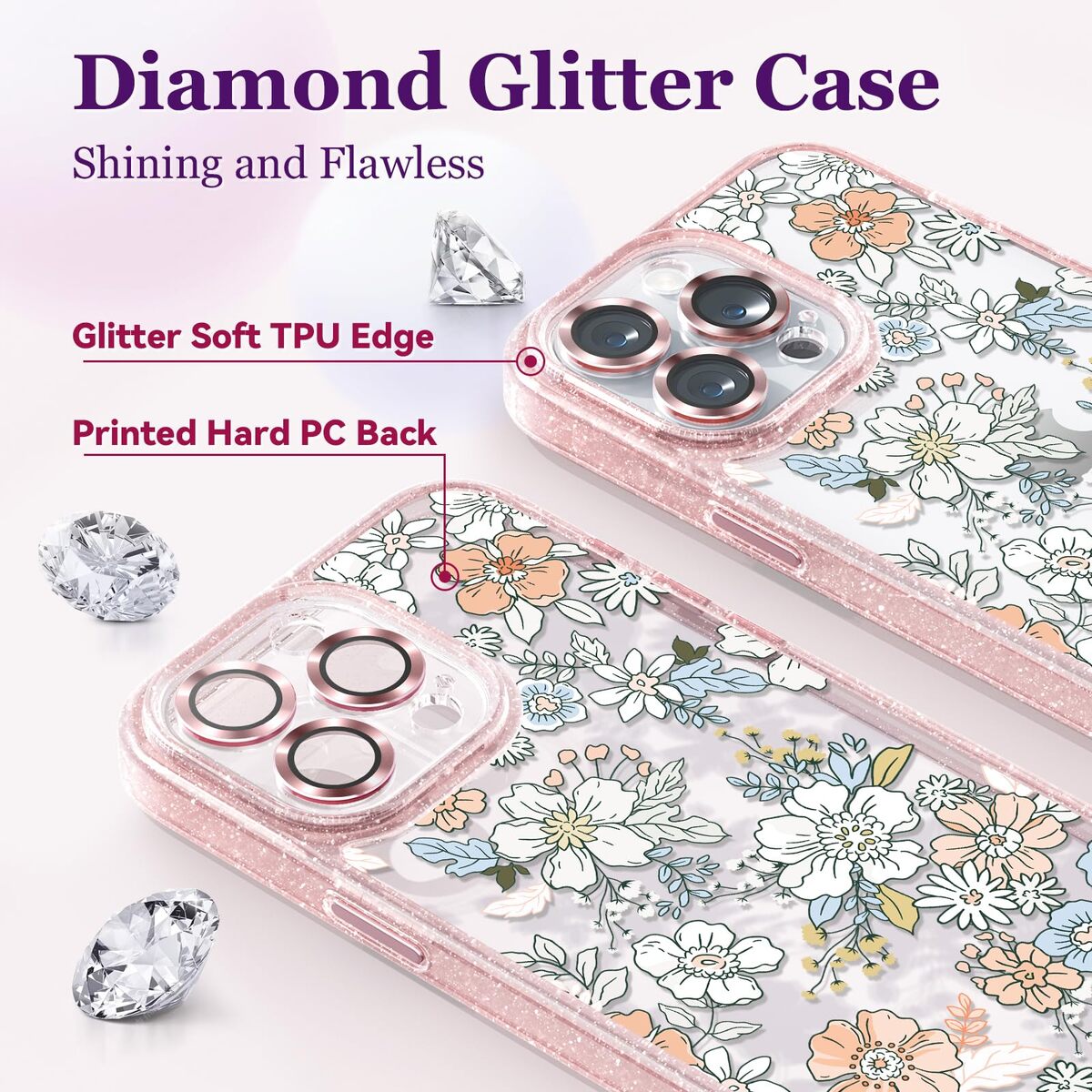 casevivid Compatible for iPhone 15 Pro Case Cute Aesthetic - Glitter Pink Phone