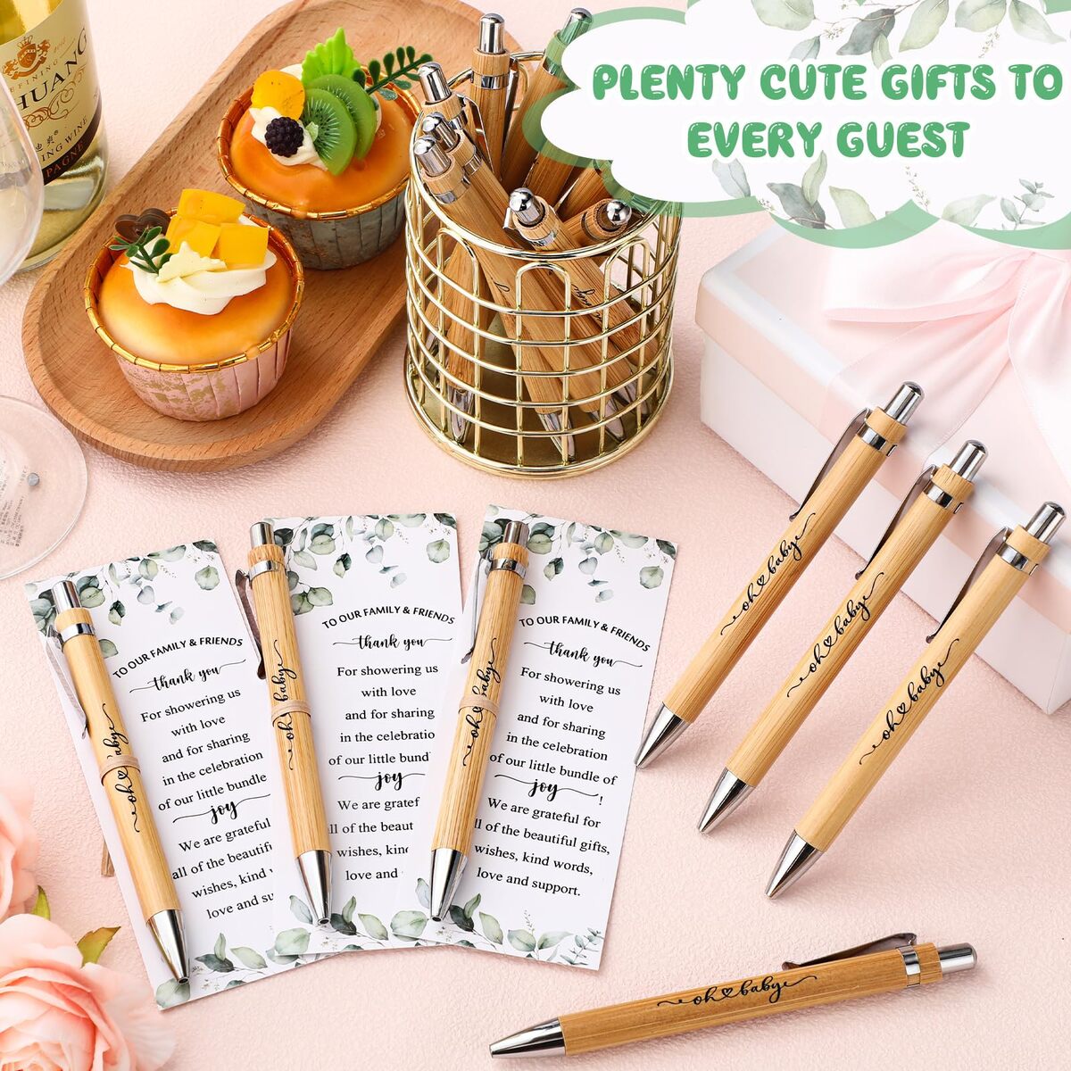 100 Sets Greenery Woodland Baby Shower Pen Gifts for Guest Baby Thank You Cards