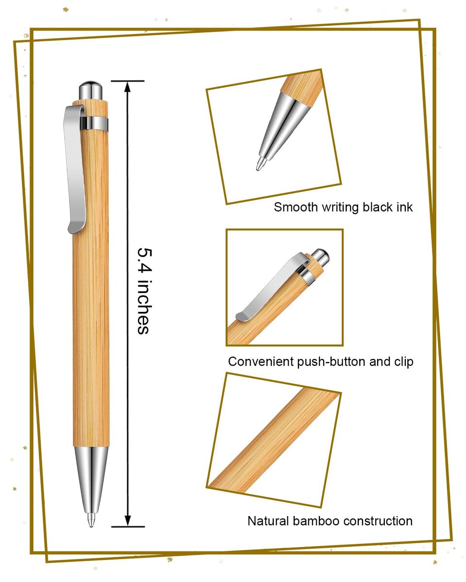 Introducing our Bamboo Pens, a bulk set of wooden ballpoint pens perfect for various purposes. Made from natural bamboo, these pens exude a delightful aroma of fresh wood. This package includes 100 pens, making it an ideal option for both personal use and gifting to family members, colleagues, or as small tokens for class activities.One of the standout features of these pens is their natural bamboo body, which can be easily customized to suit your preferences. Whether you prefer engraving, printing, or adding stickers, the smooth surface of the bamboo allows you to personalize the pens with your own unique designs and text.With these Engraving Bamboo Pens, you can enjoy the pleasure of writing with a sustainable and eco-friendly material. The natural beauty of bamboo combined with the smooth writing experience of ballpoint pens creates a perfect harmony for your everyday writing needs.Enhance your writing experience and make a lasting impression with our Engraving Bamboo Pens!