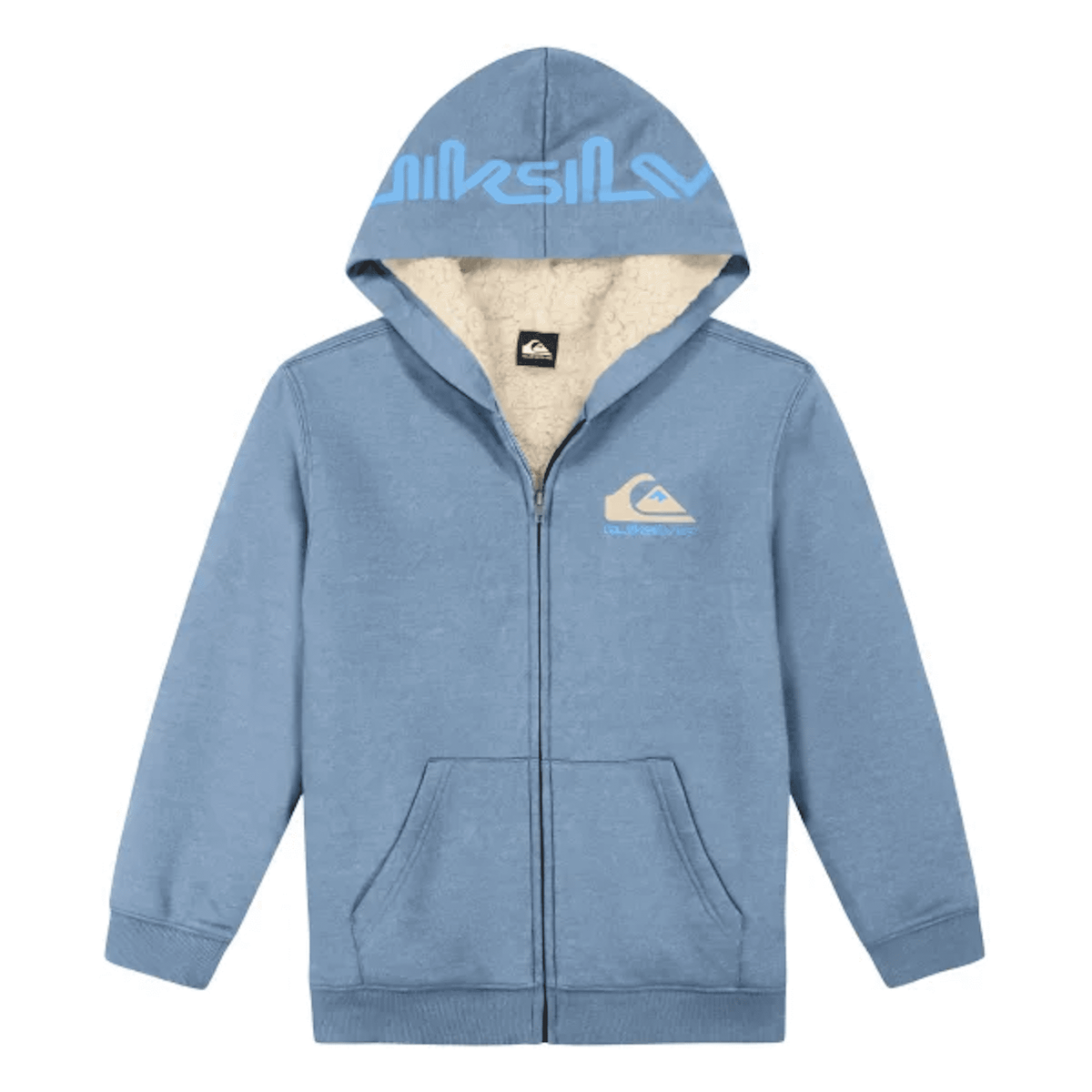 Quiksilver Sherpa Lined Zip Hoodie Blue Logo Kids Boys Fleece Jacket NWT
