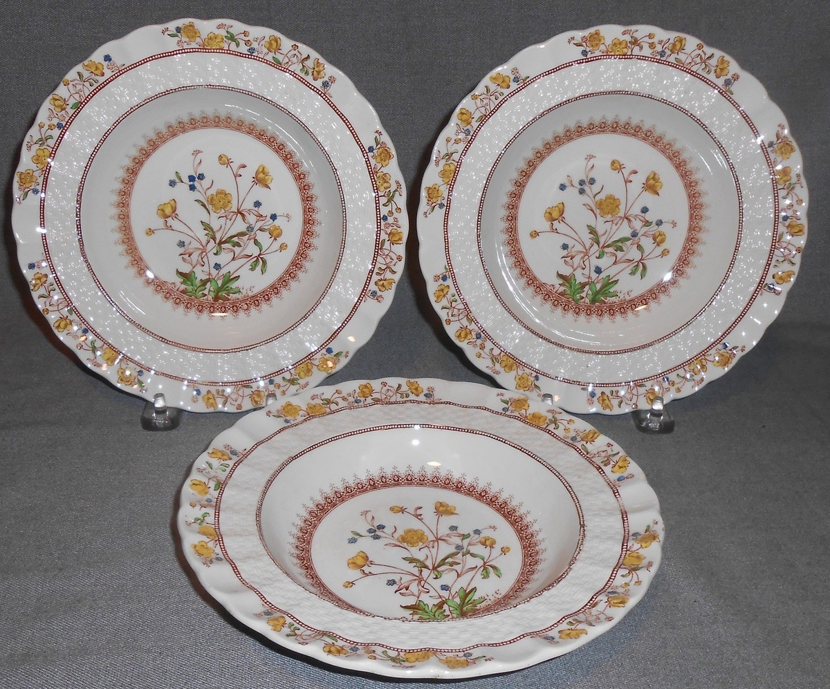 Copeland Spode BUTTERCUP PATTERN Set/3 RIM SOUP BOWLS Made in England