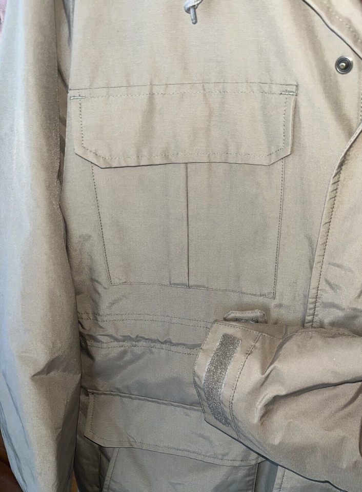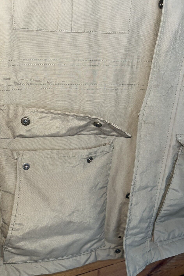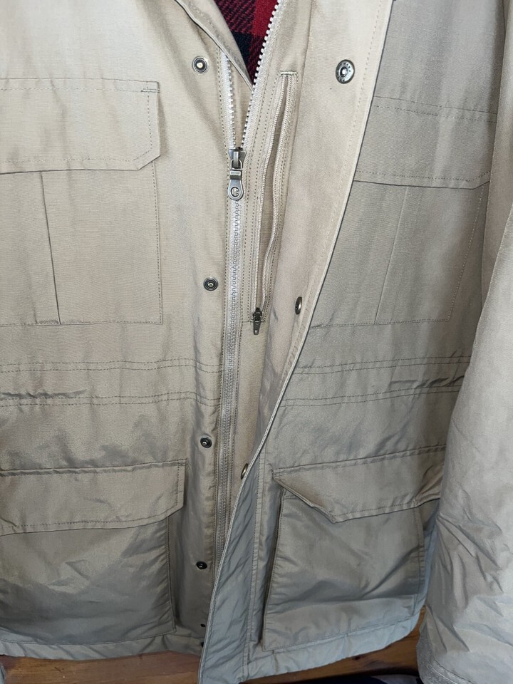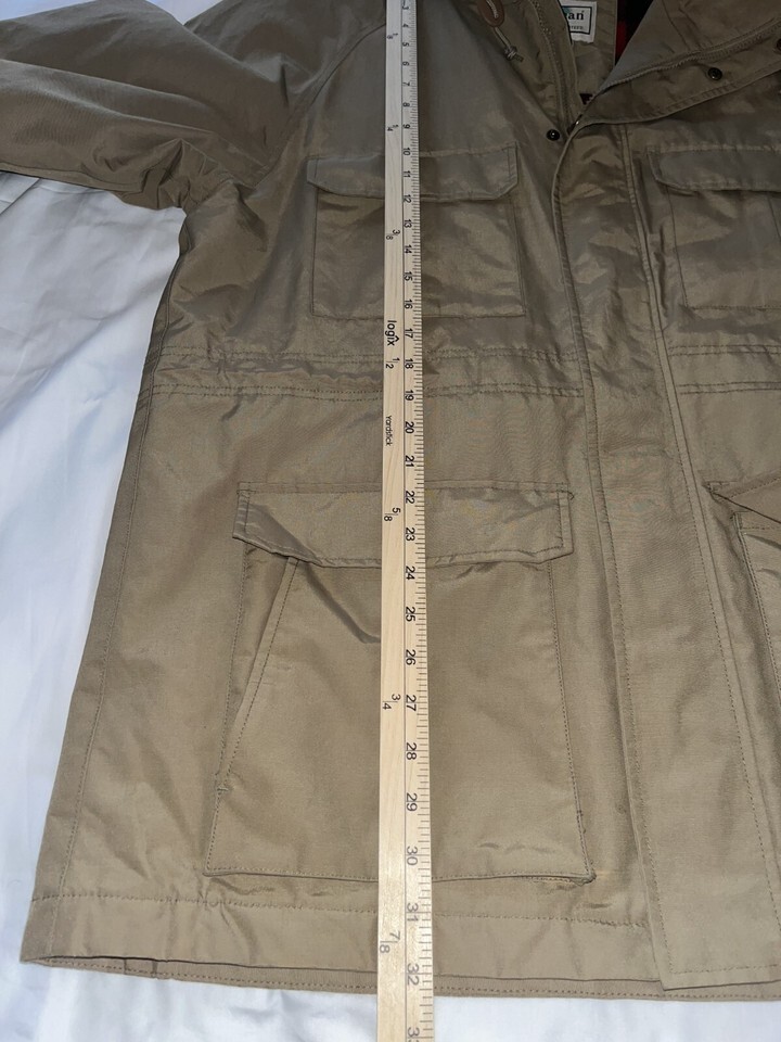 This L.L. Bean Men's Flannel Wool Lined Barn Chore Coat in size XL-Reg is a versatile and stylish outerwear option for cold weather. With a polyester outer shell and a wool blend lining, it provides warmth and comfort during the winter, fall, or spring seasons. The hooded design, zip and button closure, and multiple pockets add practical features for travel, casual outings, or workwear. The mid-length coat with a check pattern and neutral beige color makes it a timeless and classic addition to any wardrobe, perfect for everyday use or outdoor activities like walking, hunting, or hiking.