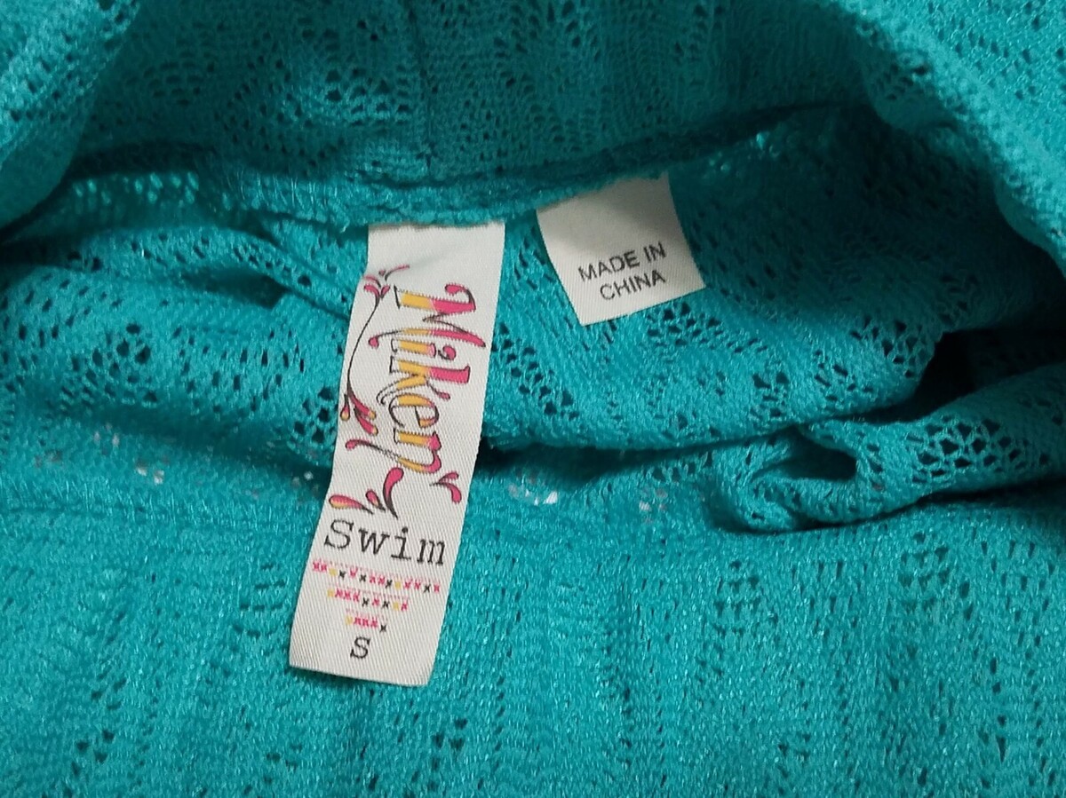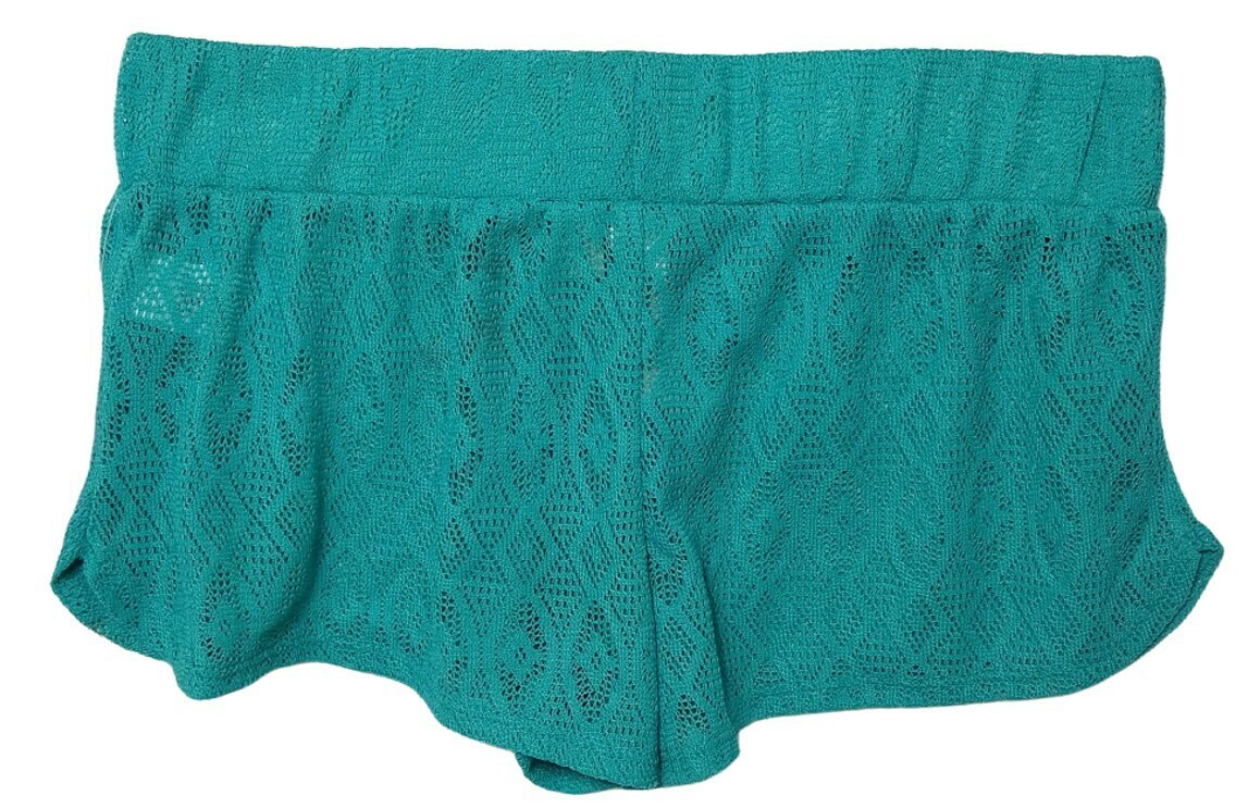 Miken Swim Shorts Women’s Small S Teal Blue Crochet Lace Beach Cover Up NWT