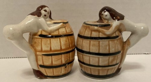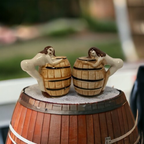 Barrel Huggers Salt & Pepper Shakers Vintage Japan Women Collectible Ceramic