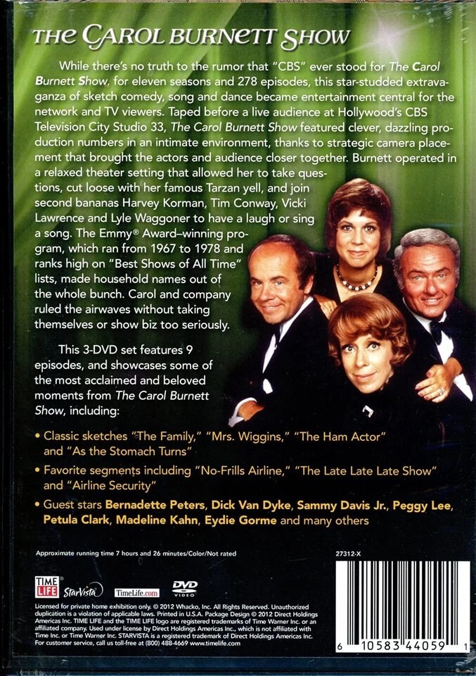 The Carol Burnett Show is a brand new 3 DVD set featuring 9 episodes of the beloved TV series. Produced by Time Life, this family-friendly show stars Carol Burnett in classic episodes that were originally aired on PBS. The DVDs are in NTSC video format with English subtitles and are rated NR. This set includes English language options and is region coded for US and Canada viewing. The tall DVD case makes it easy to store and access all the episodes of this timeless TV show.